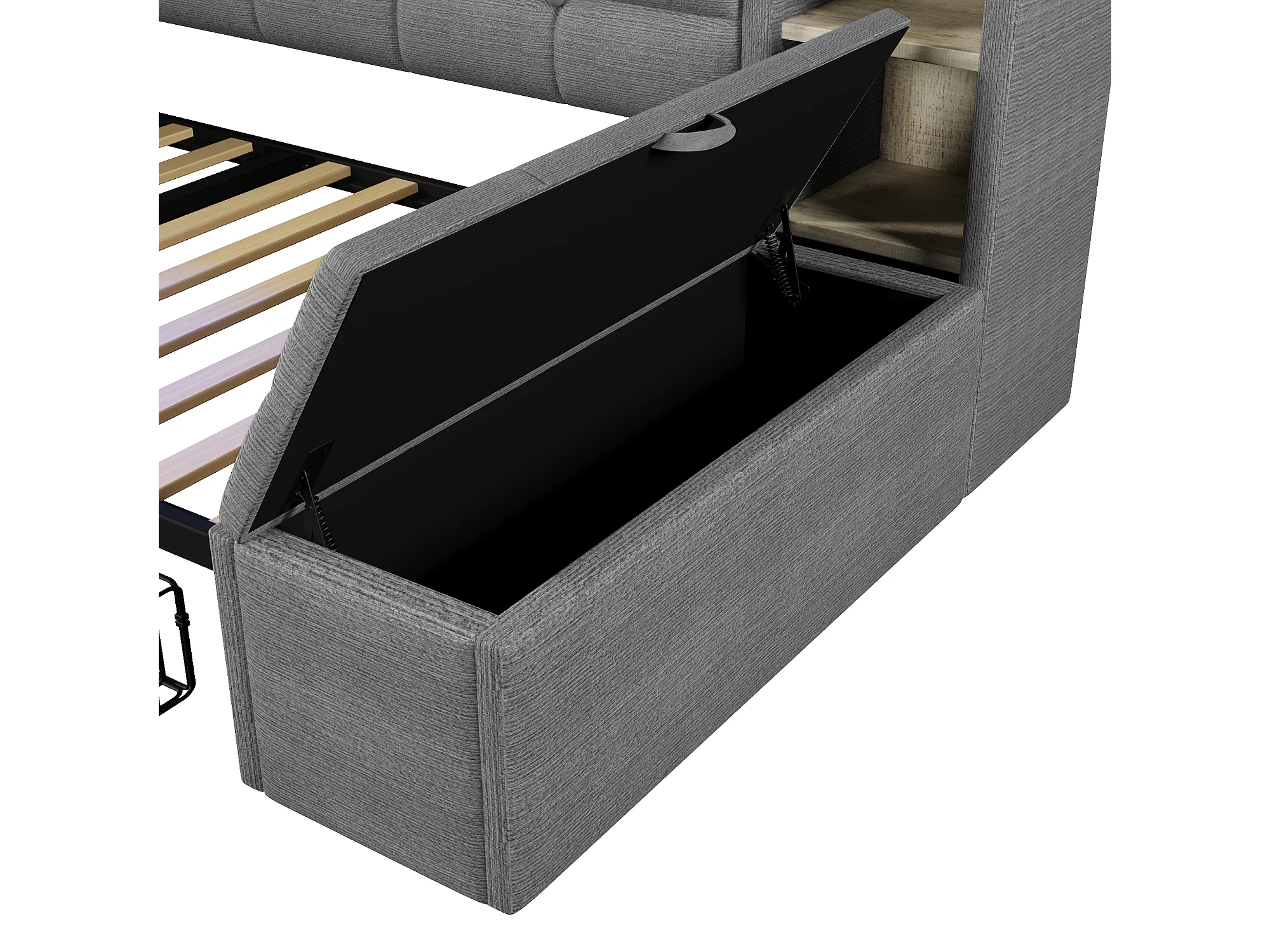 Schlafsofa 90x190 cm - mit 2 Schubladen - mit USB- + Type-C-Anschlüssen - mit LED-Beleuchtung - Samtstoff - dunkelgrau​ (Matratze nicht inbegriffen)