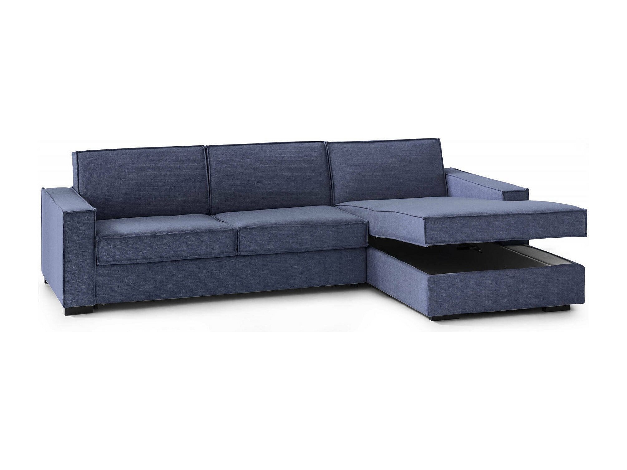 Schlafsofa Daahje, Ecksofa, 100% Made in Italy, Sofa mit Drehöffnung, Rechte Containerhalbinsel, mit Standard-Armlehnen, Cm 280x95h90, Blau