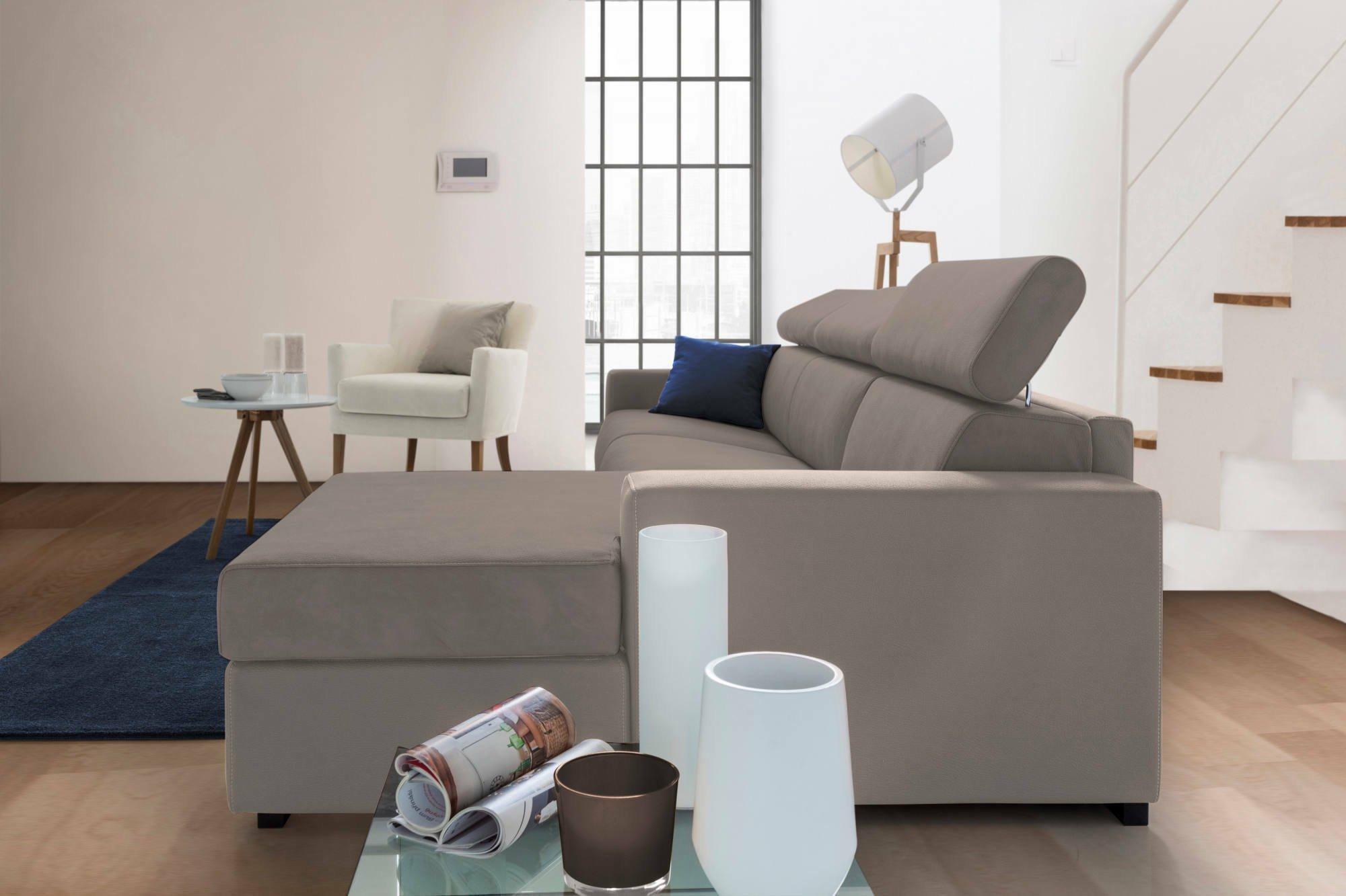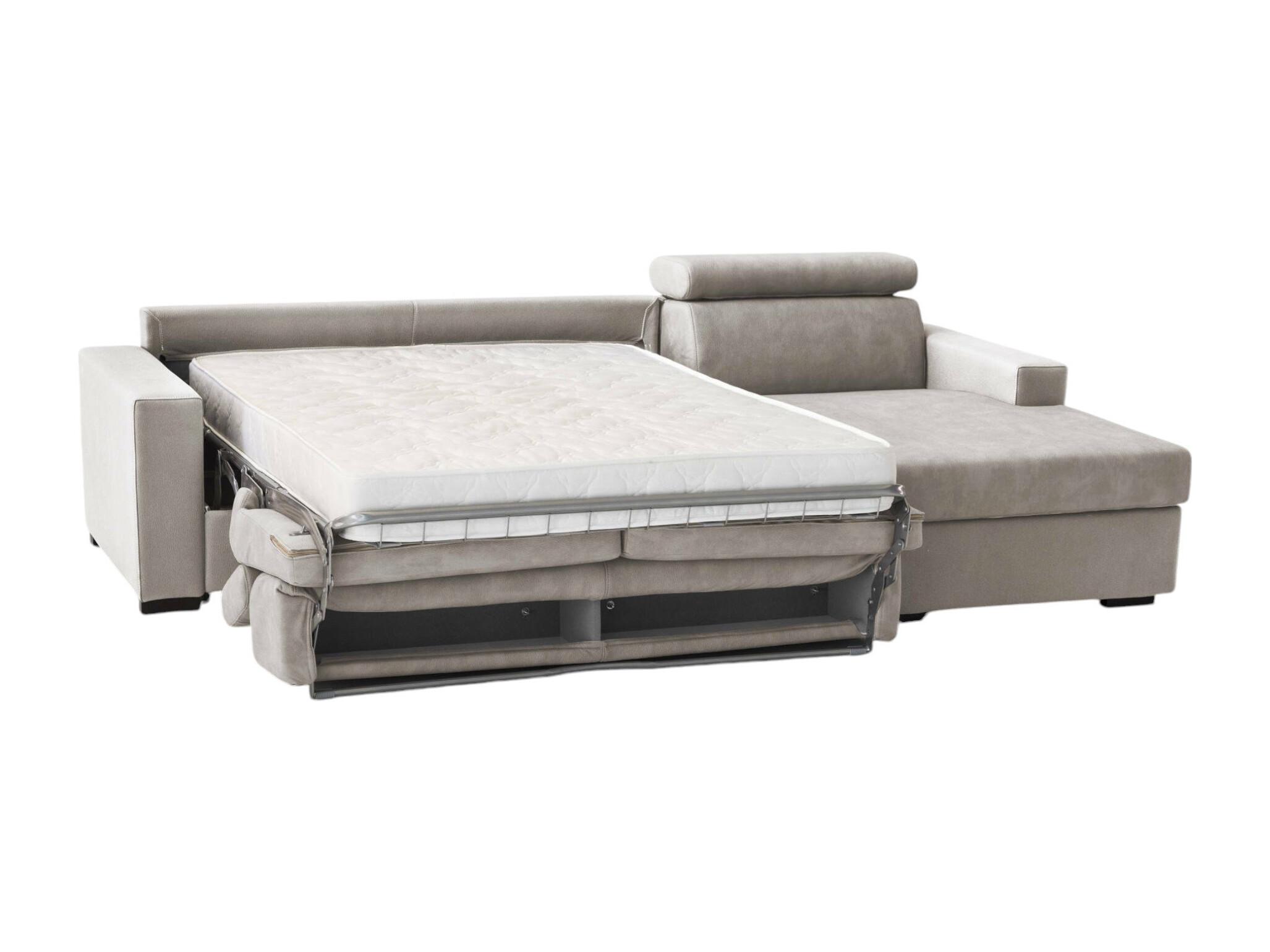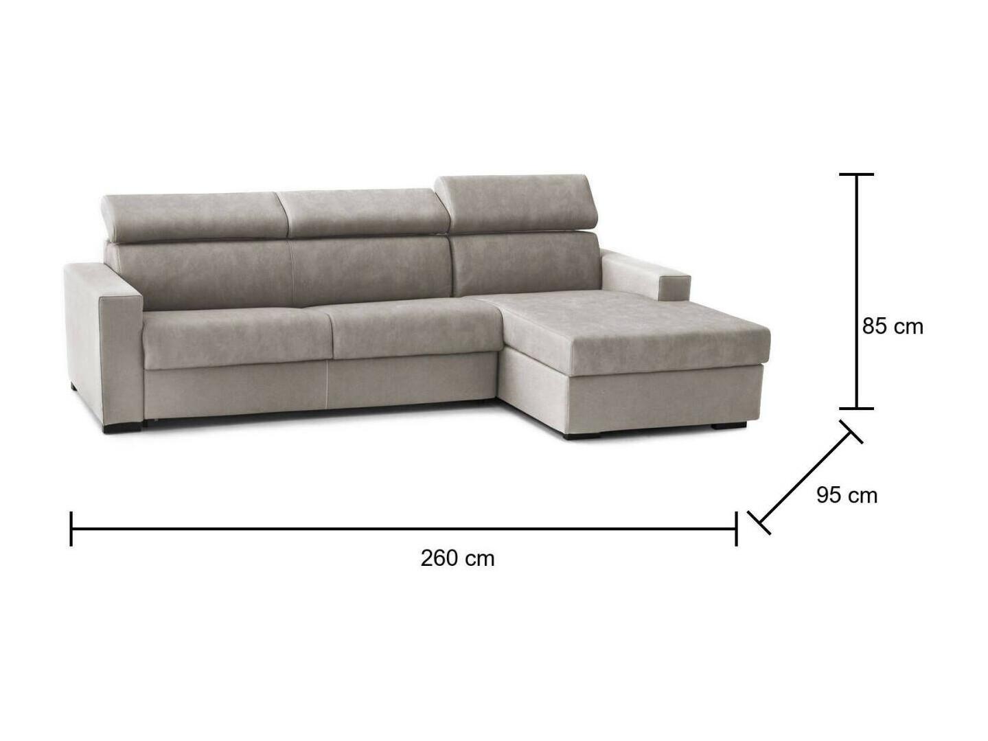 Schlafsofa Alceste, Ecksofa, 100 % Made in Italy, Sofa mit drehbarer Öffnung, mit Aufbewahrungshalbinsel rechts, mit schmalen Armlehnen, 260 x 95 x 85 cm, Taupe