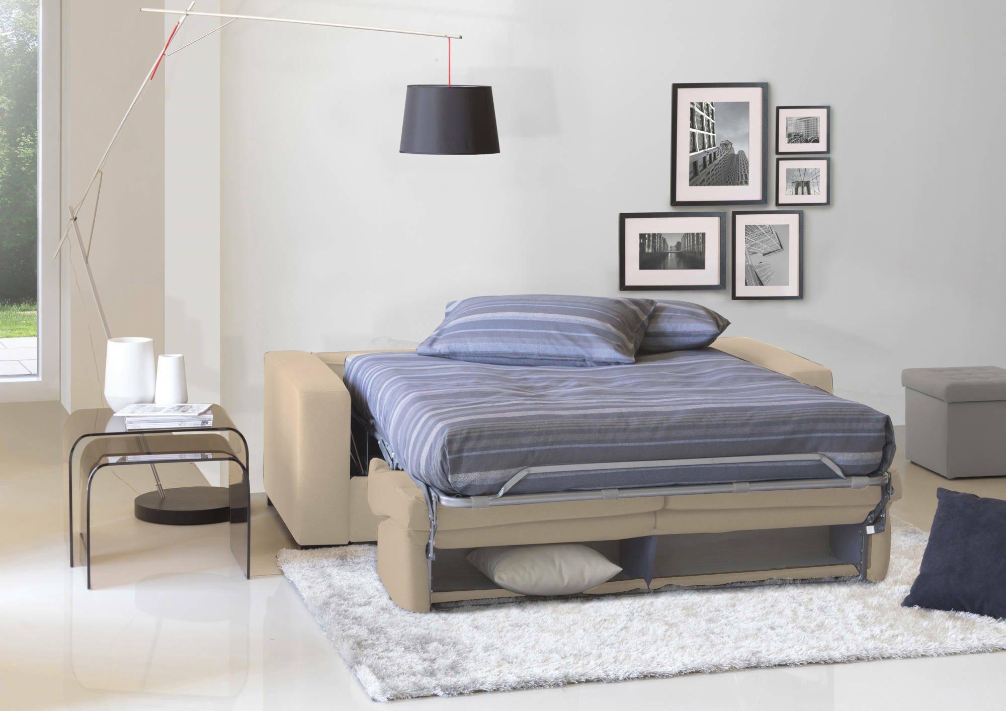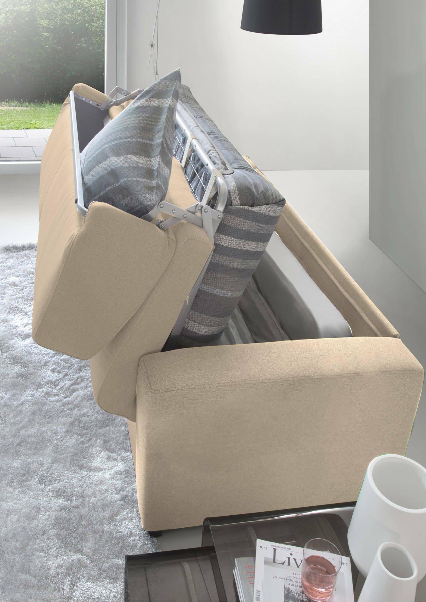 Schlafsofa Alicia, 3-Sitzer-Sofa, 100 % Made in Italy, Wohnzimmersofa mit drehbarer Öffnung, aus gepolstertem Stoff, mit schmalen Armlehnen, 200 x 95 x 90 cm, Beige