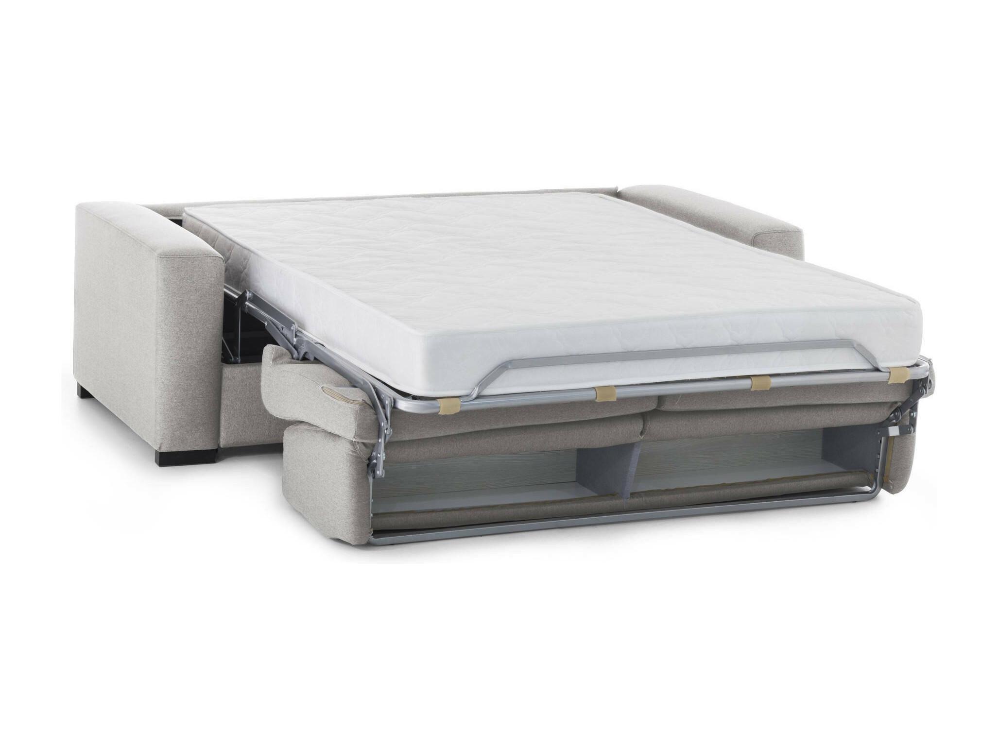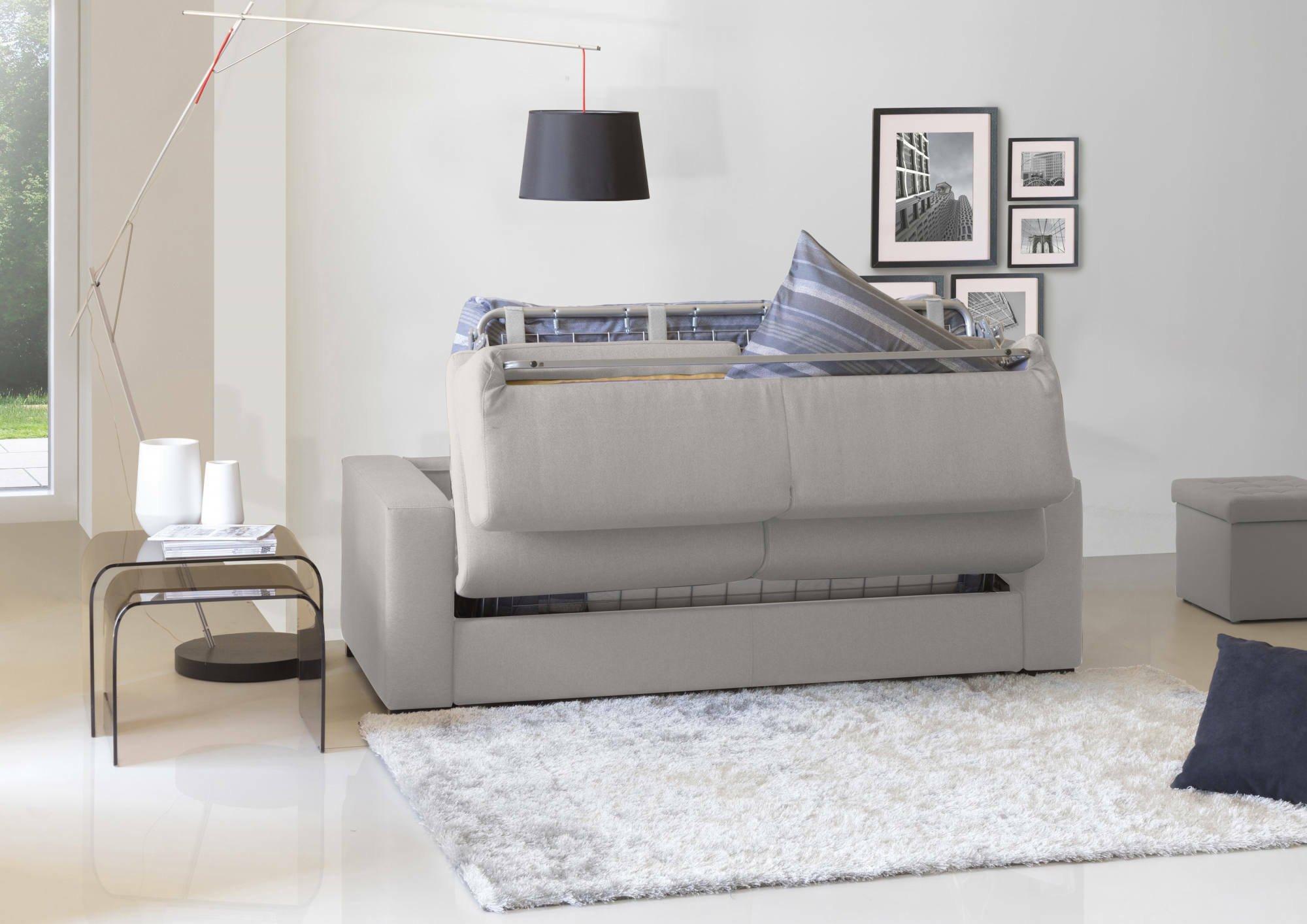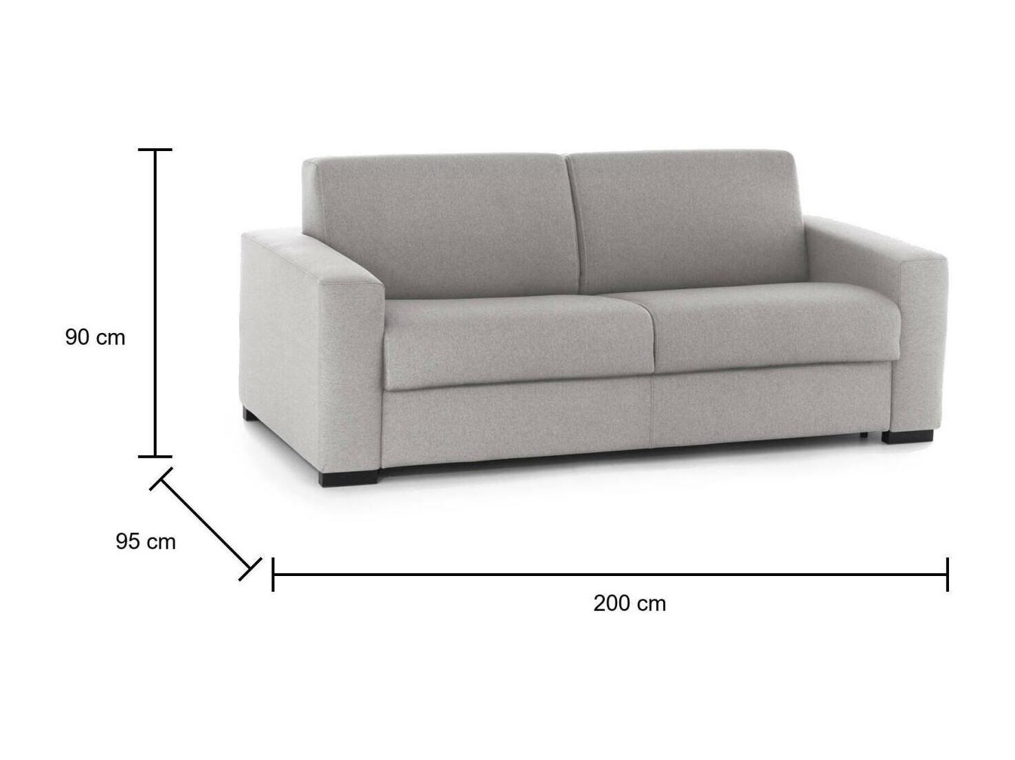 Schlafsofa Alicia, 3-Sitzer-Sofa, 100 % Made in Italy, Wohnzimmersofa mit drehbarer Öffnung, aus gepolstertem Stoff, mit schmalen Armlehnen, 200 x 95 x 90 cm, Grau