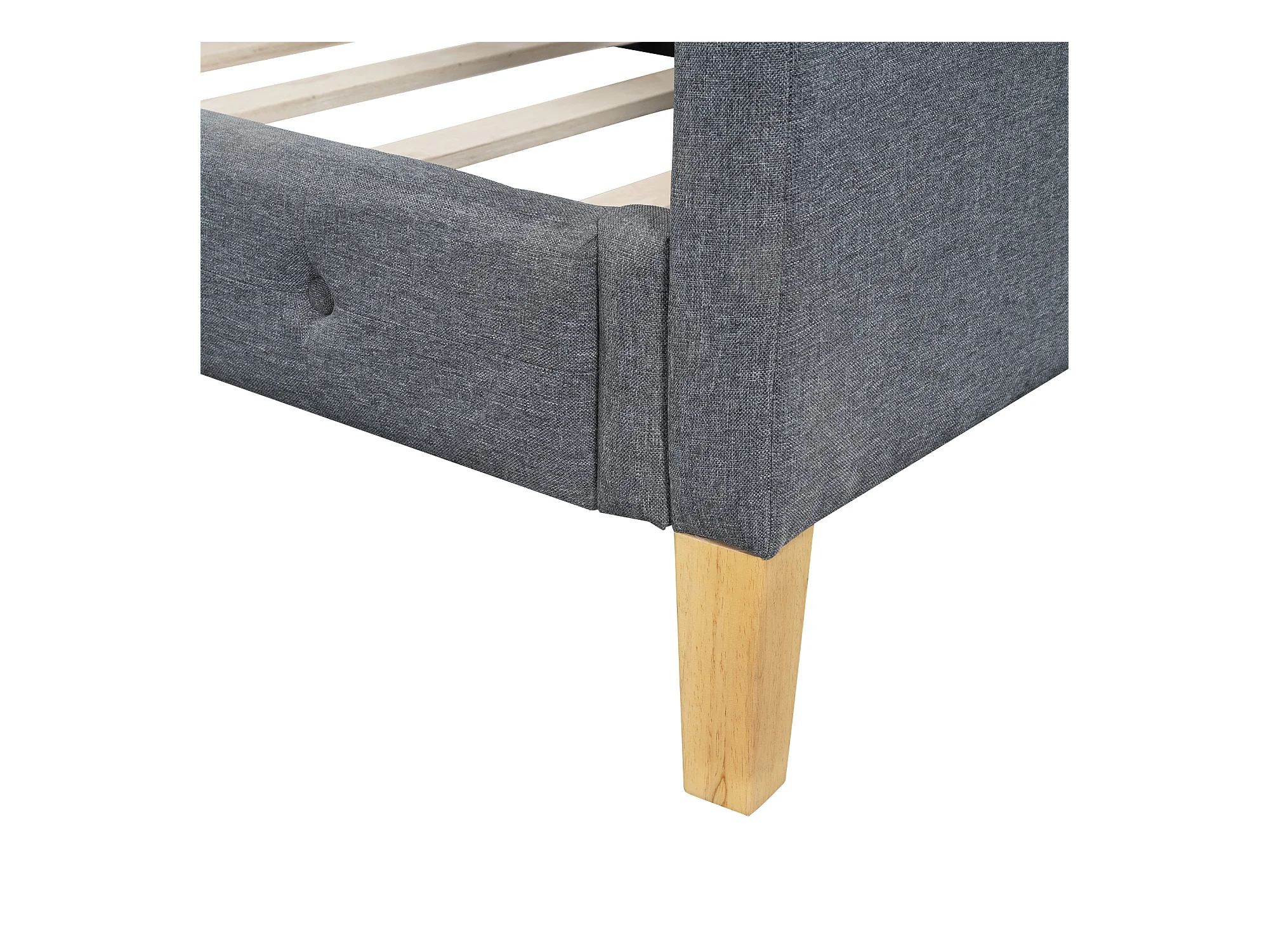 Schlafsofa aus Leinen, 90 x 200 cm, Bettgestell, Knopfknopfverzierung, schlichtes und elegantes Bett, Grau