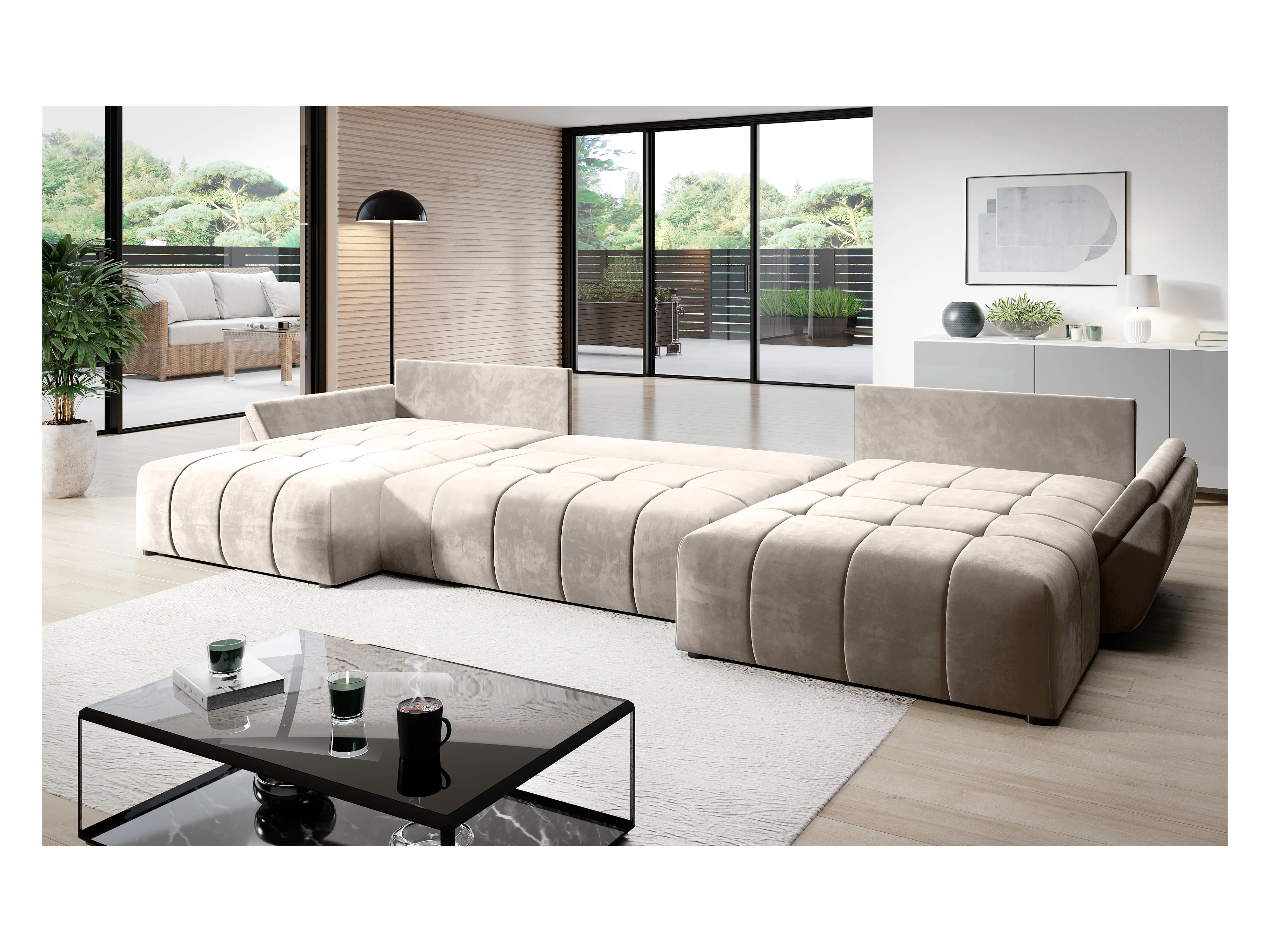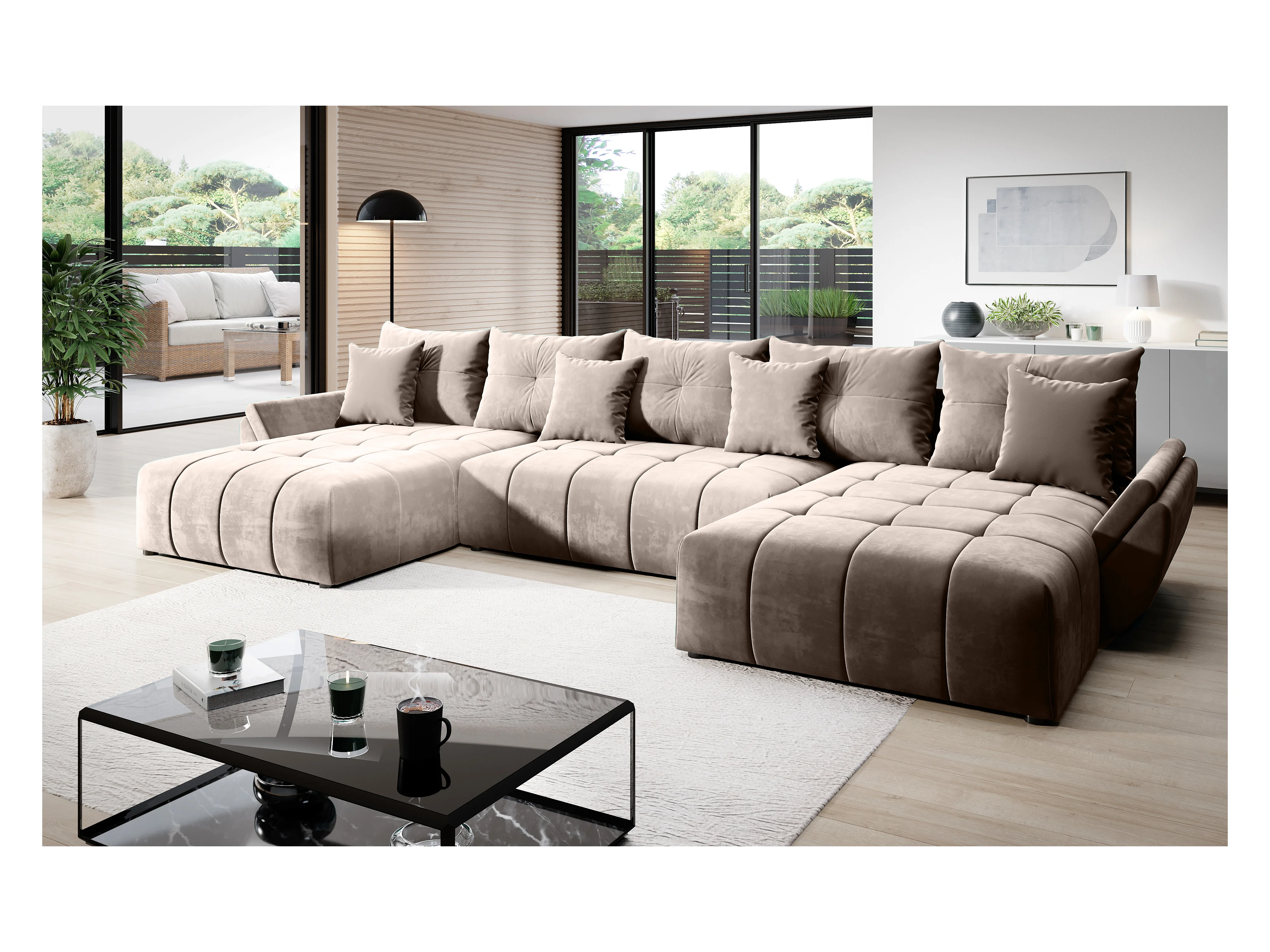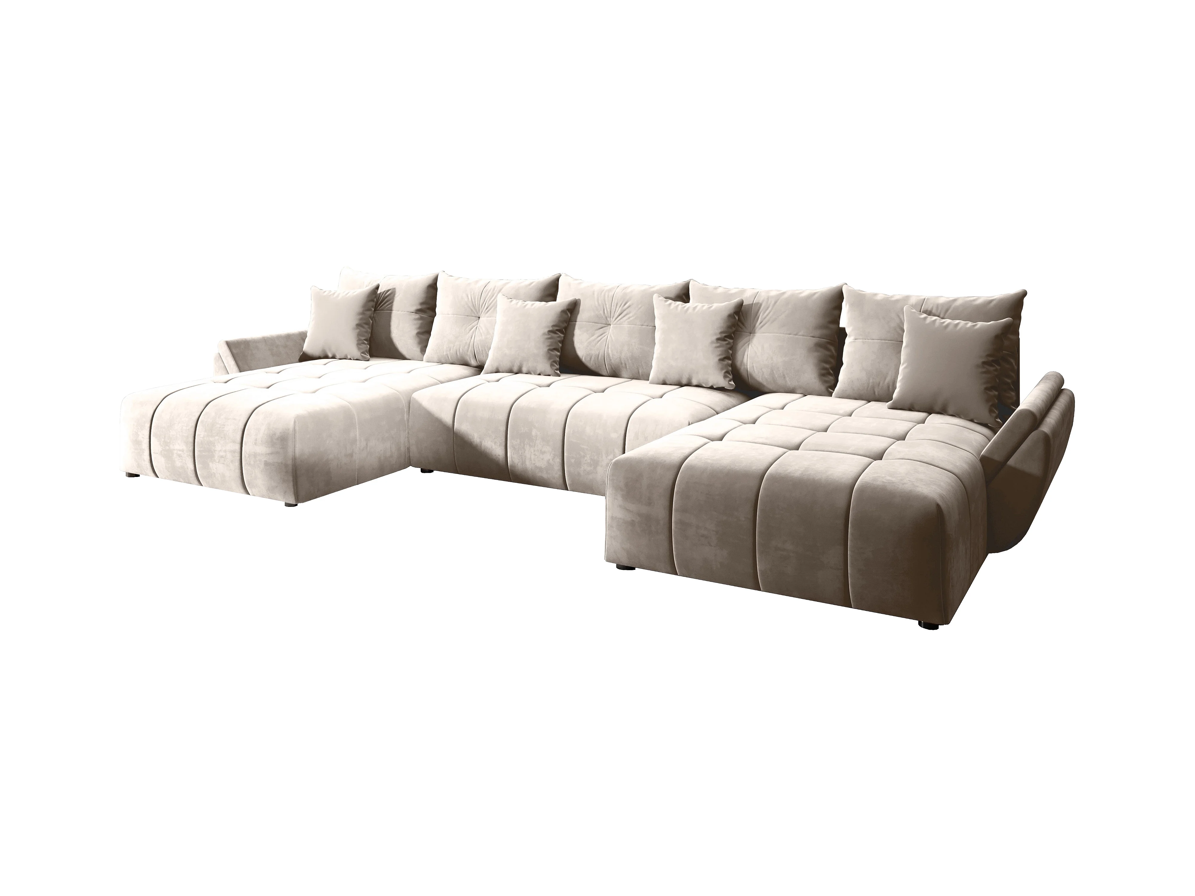 Schlafsofa CALVANI U mit Bettkasten und Kissen - Couch Sofa U-Form EN01 - beige
