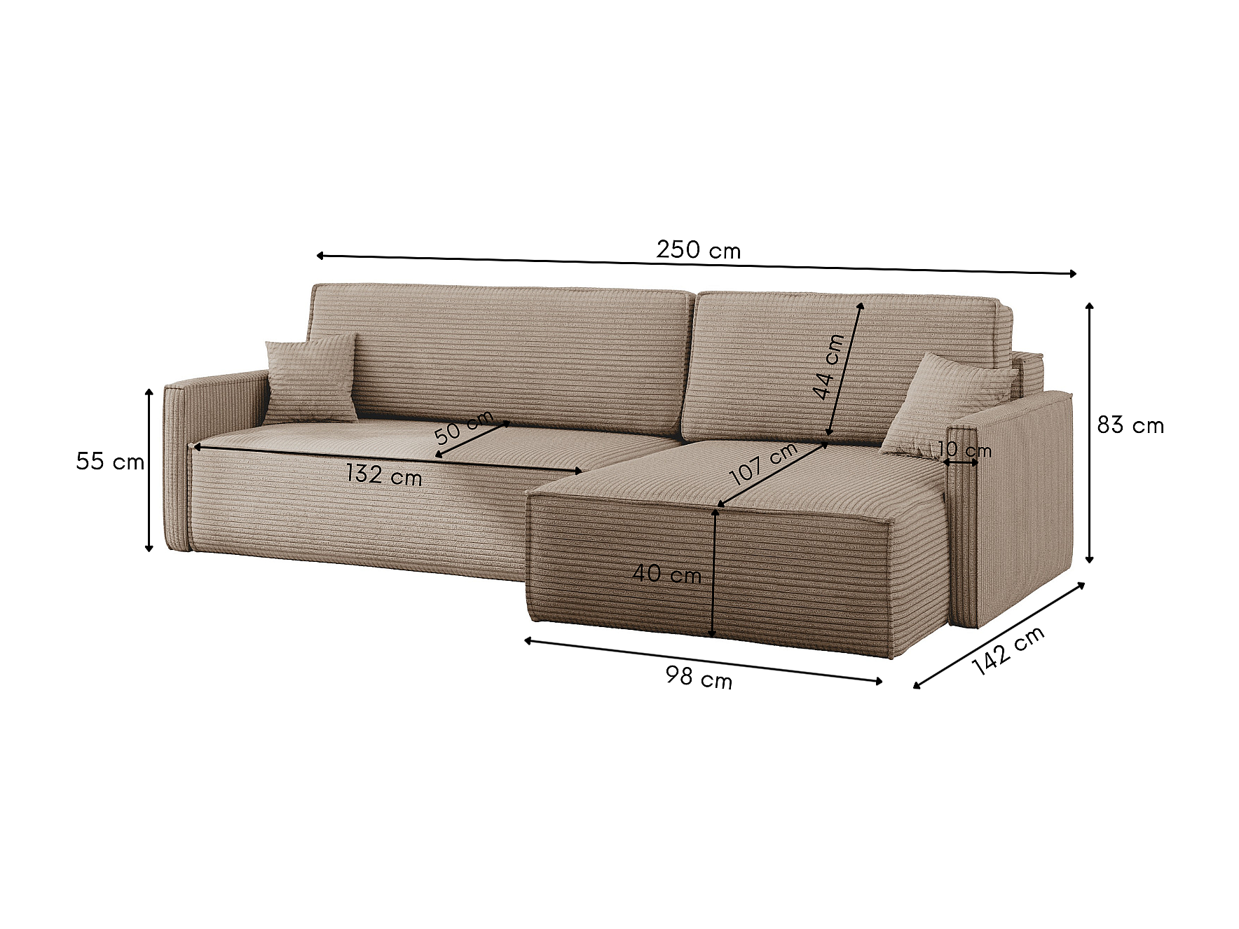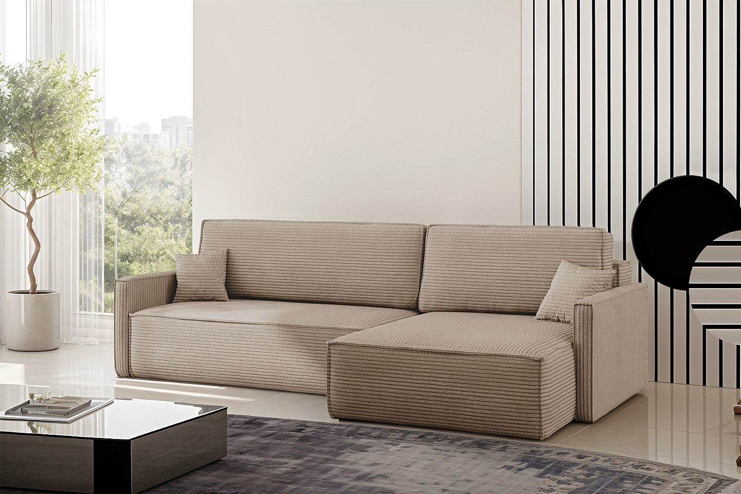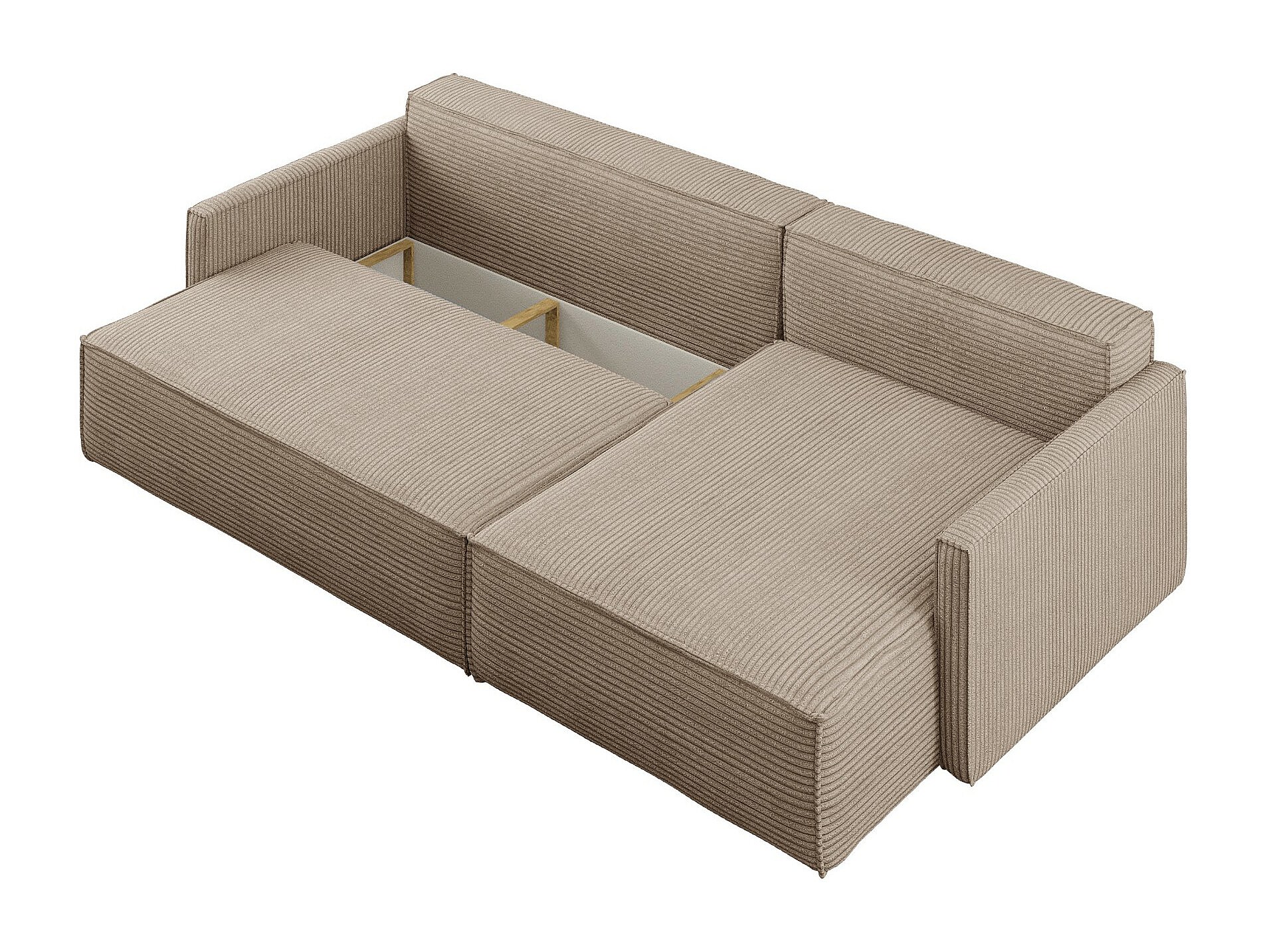 Schlafsofa Carlos, Ecksofa L-Form mit schlaffunktion und bettkasten Stoff Poso Dunkelbeige Rechts