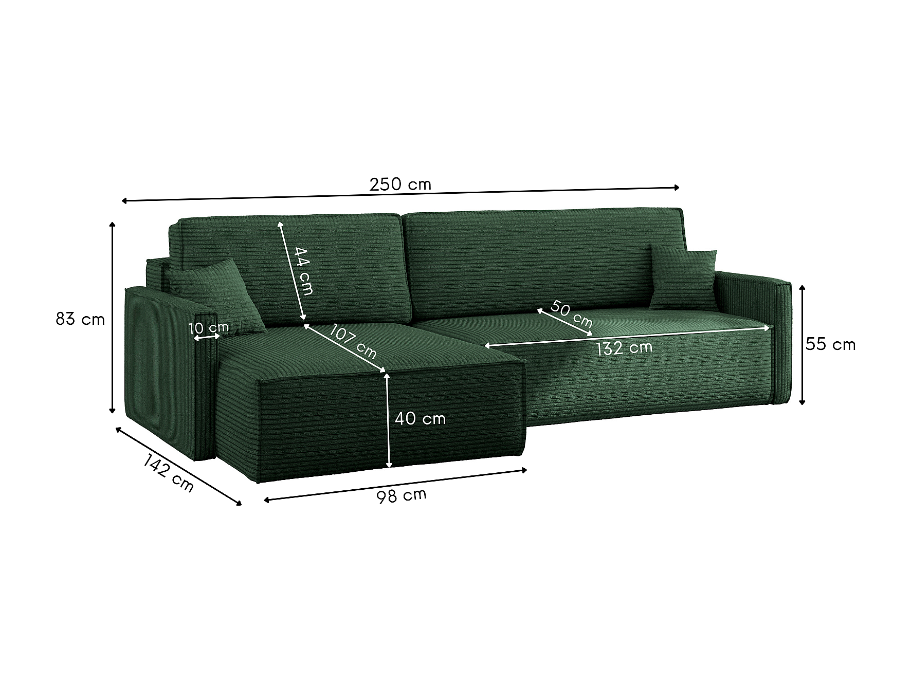 Schlafsofa Carlos, Ecksofa L-Form mit schlaffunktion und bettkasten Stoff Poso Grün Links