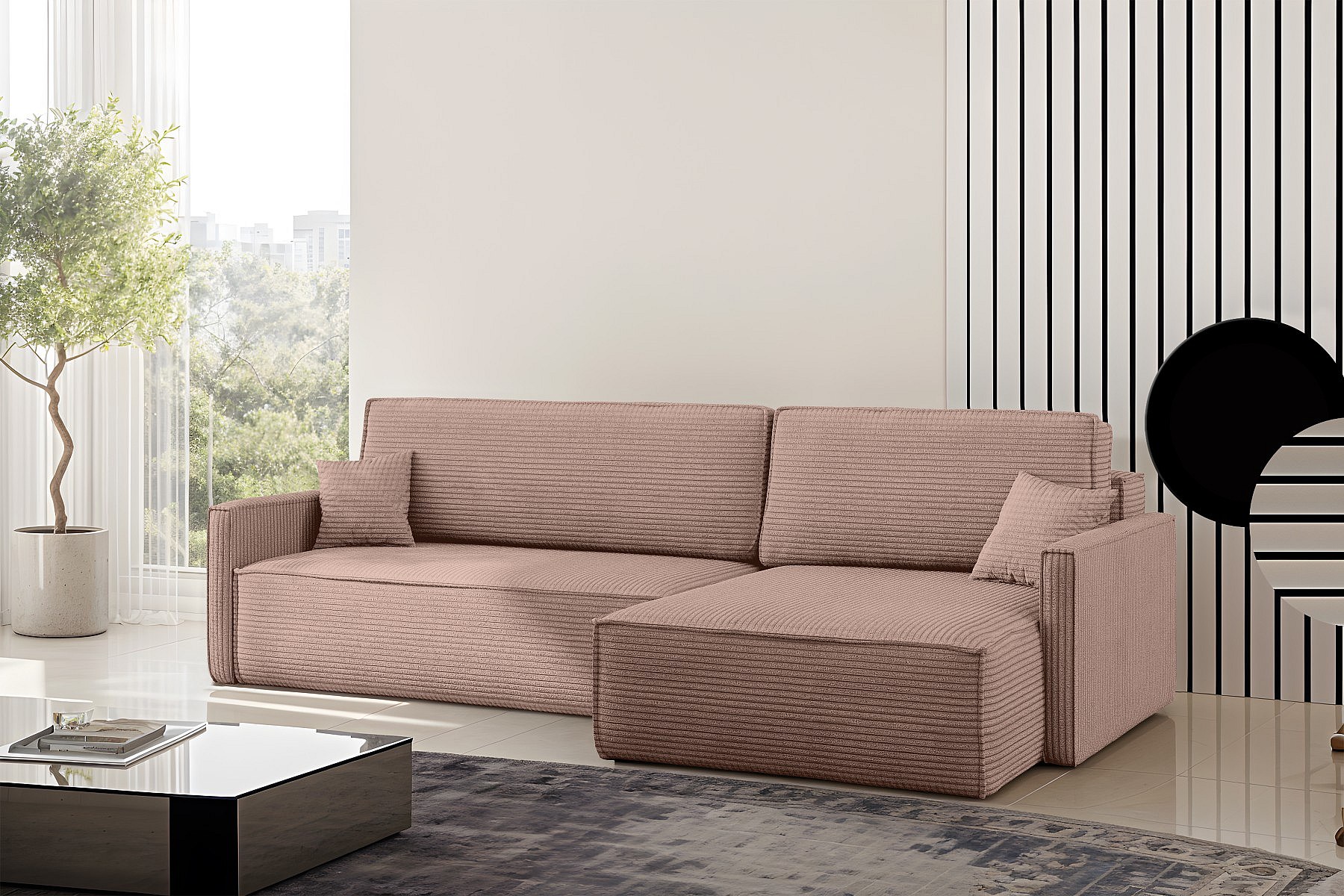 Schlafsofa Carlos, Ecksofa L-Form mit schlaffunktion und bettkasten Stoff Poso Rosa Rechts