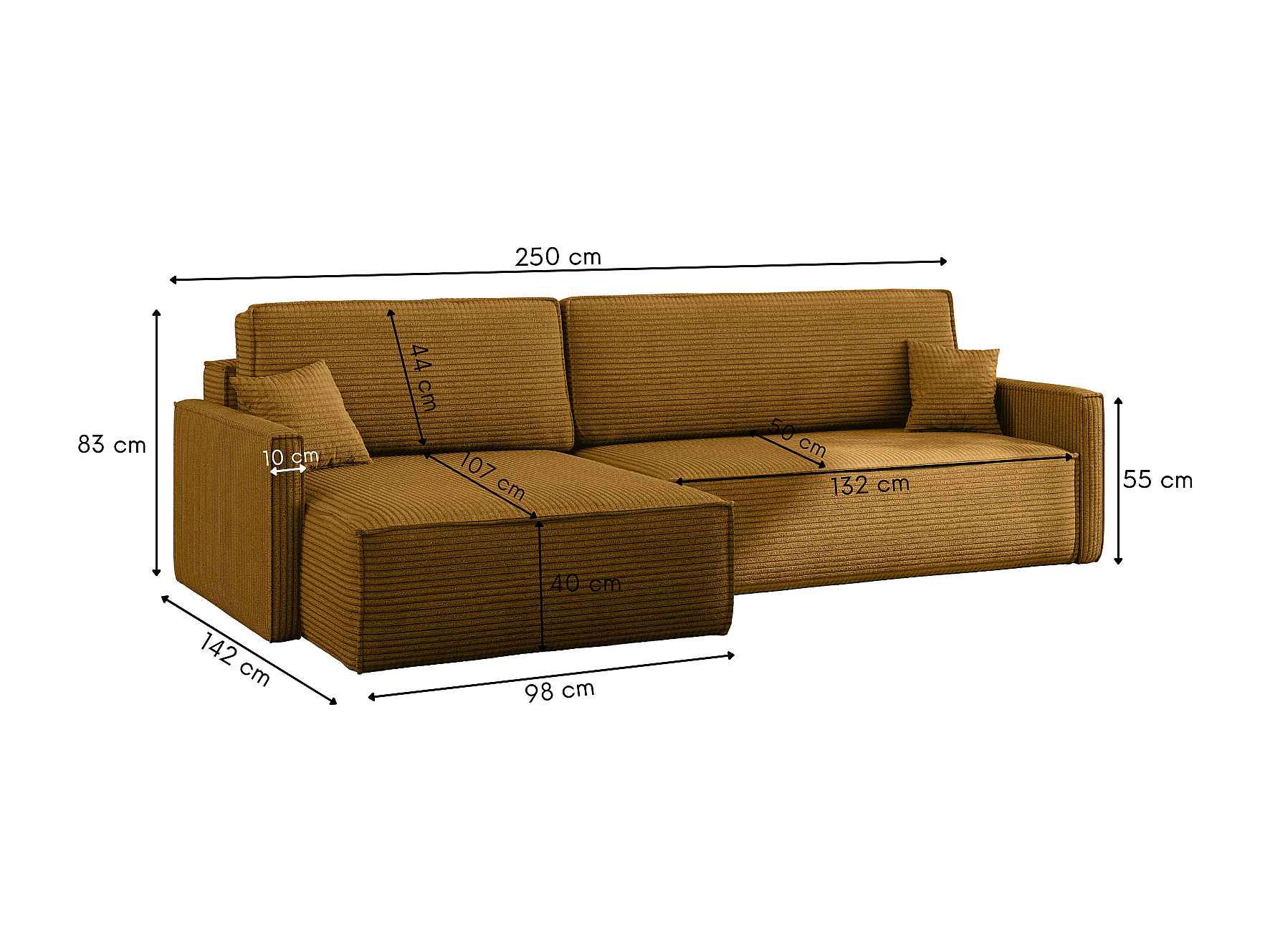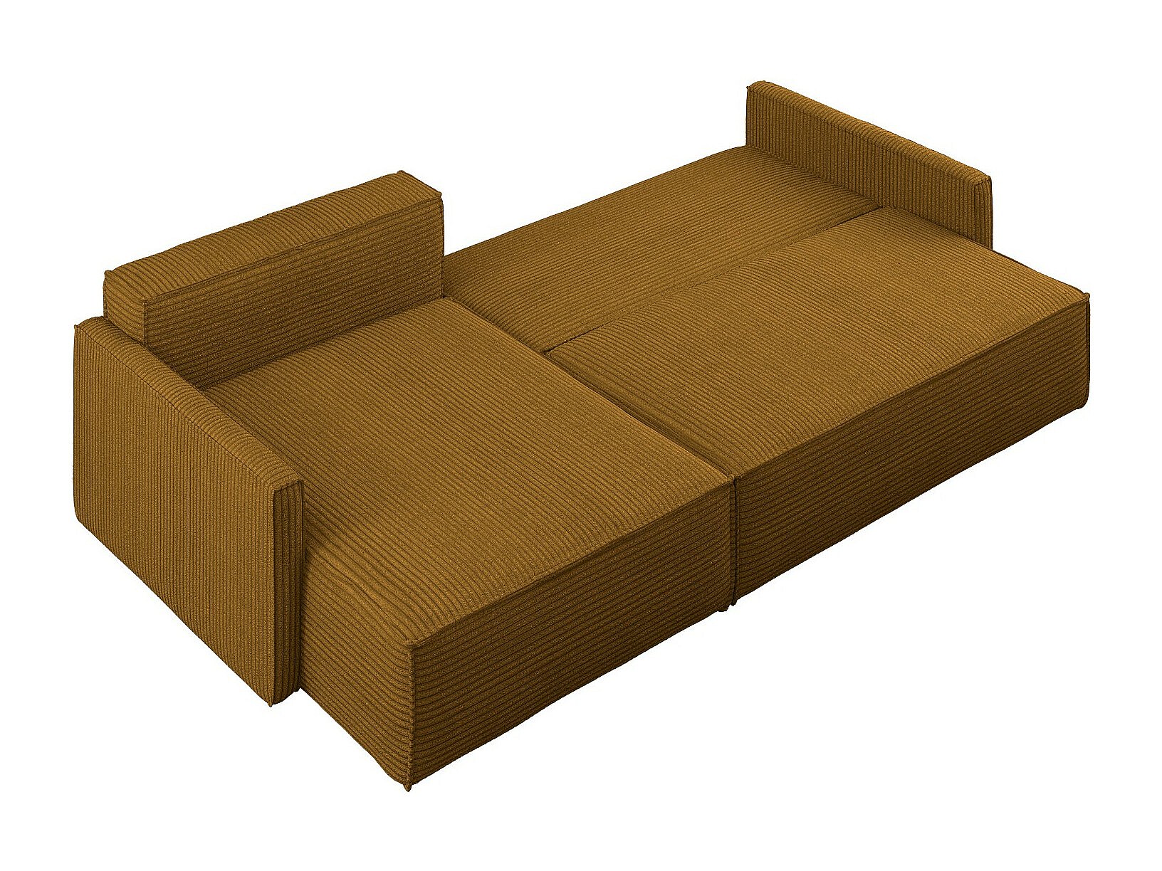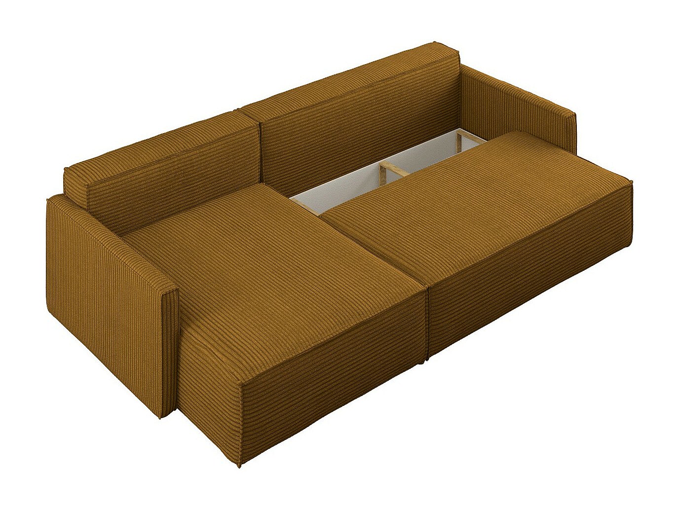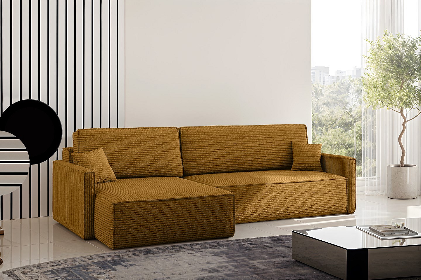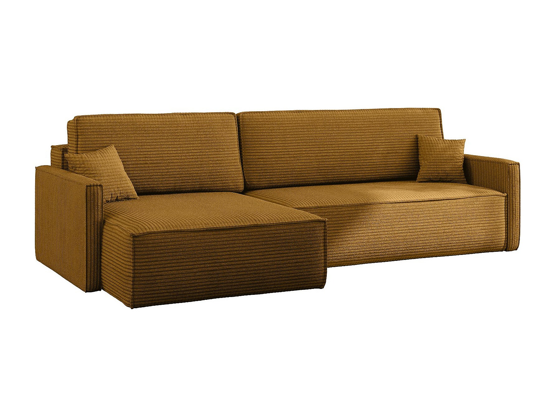 Schlafsofa Carlos, Ecksofa L-Form mit schlaffunktion und bettkasten Stoff Poso Senffarbe Links