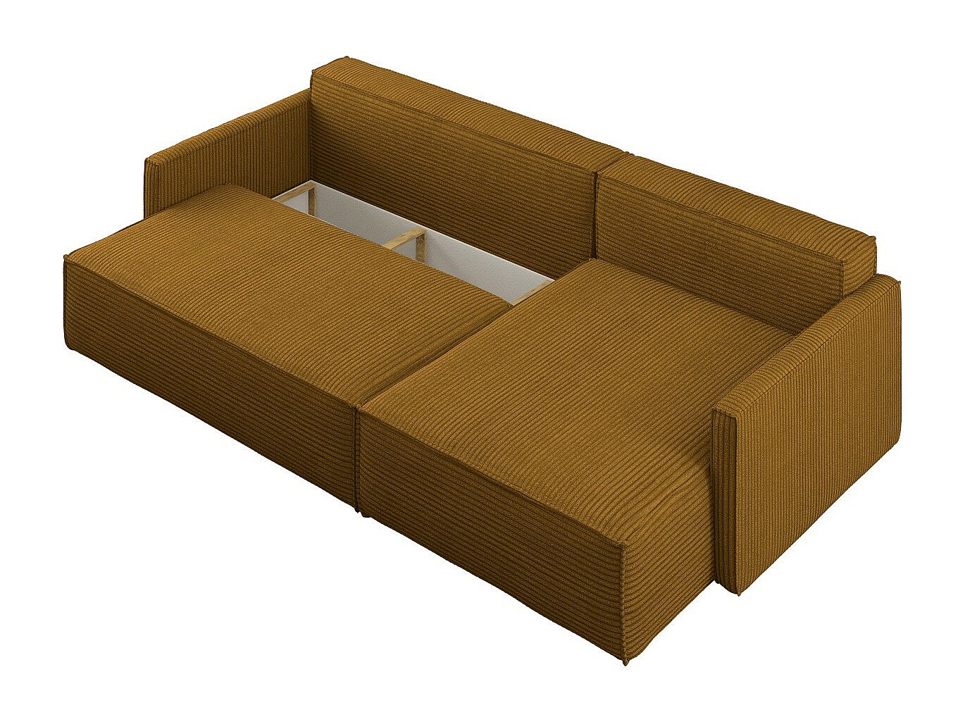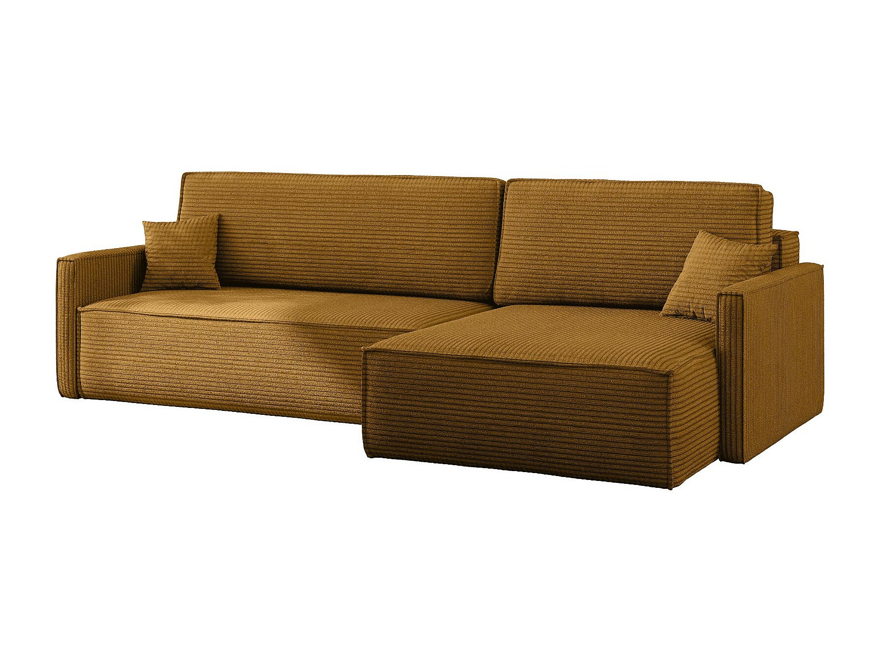 Schlafsofa Carlos, Ecksofa L-Form mit schlaffunktion und bettkasten Stoff Poso Senffarbe Rechts