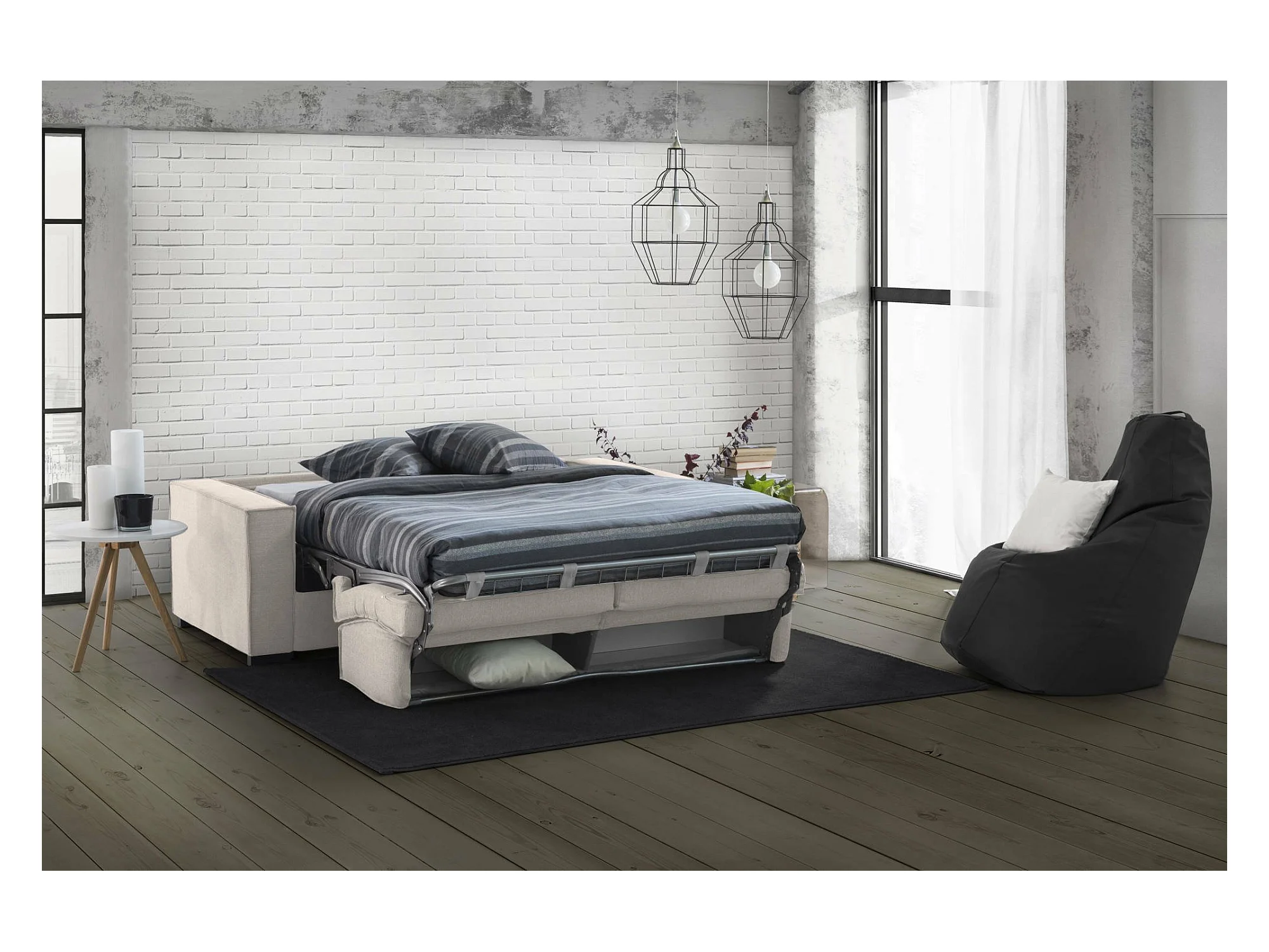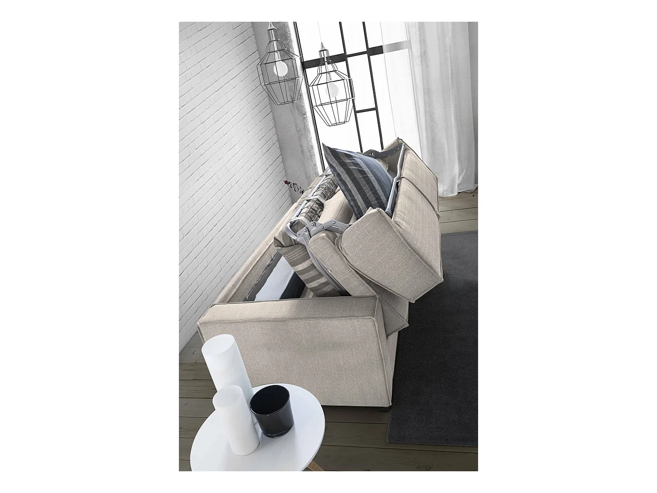 Schlafsofa Daad, 3-Sitzer-Sofa, 100% Made in Italy, Wohnzimmersofa mit drehbarer Öffnung, aus gepolstertem Stoff, mit schmalen Armlehnen, Cm 200x95h90, Turteltaube