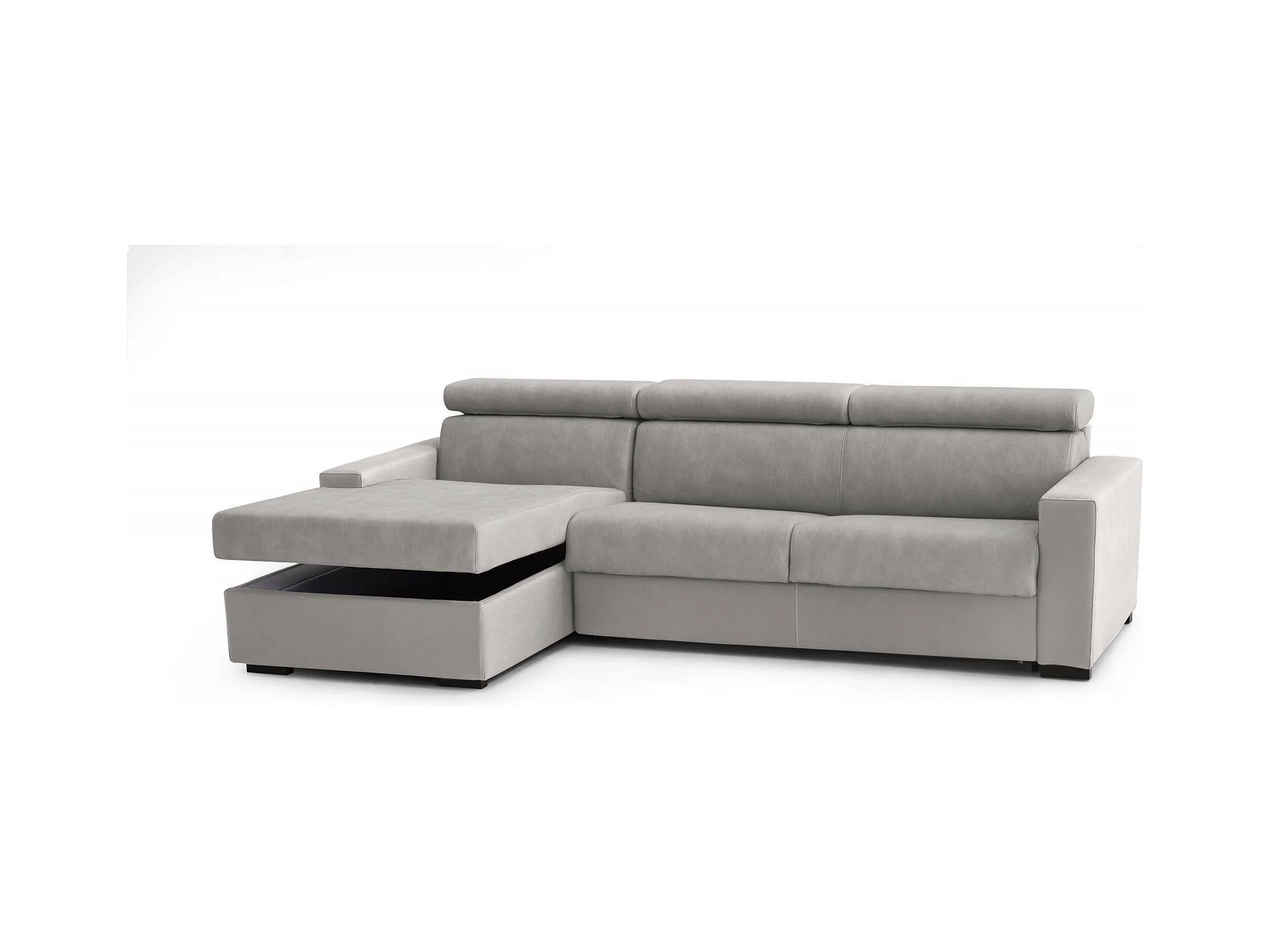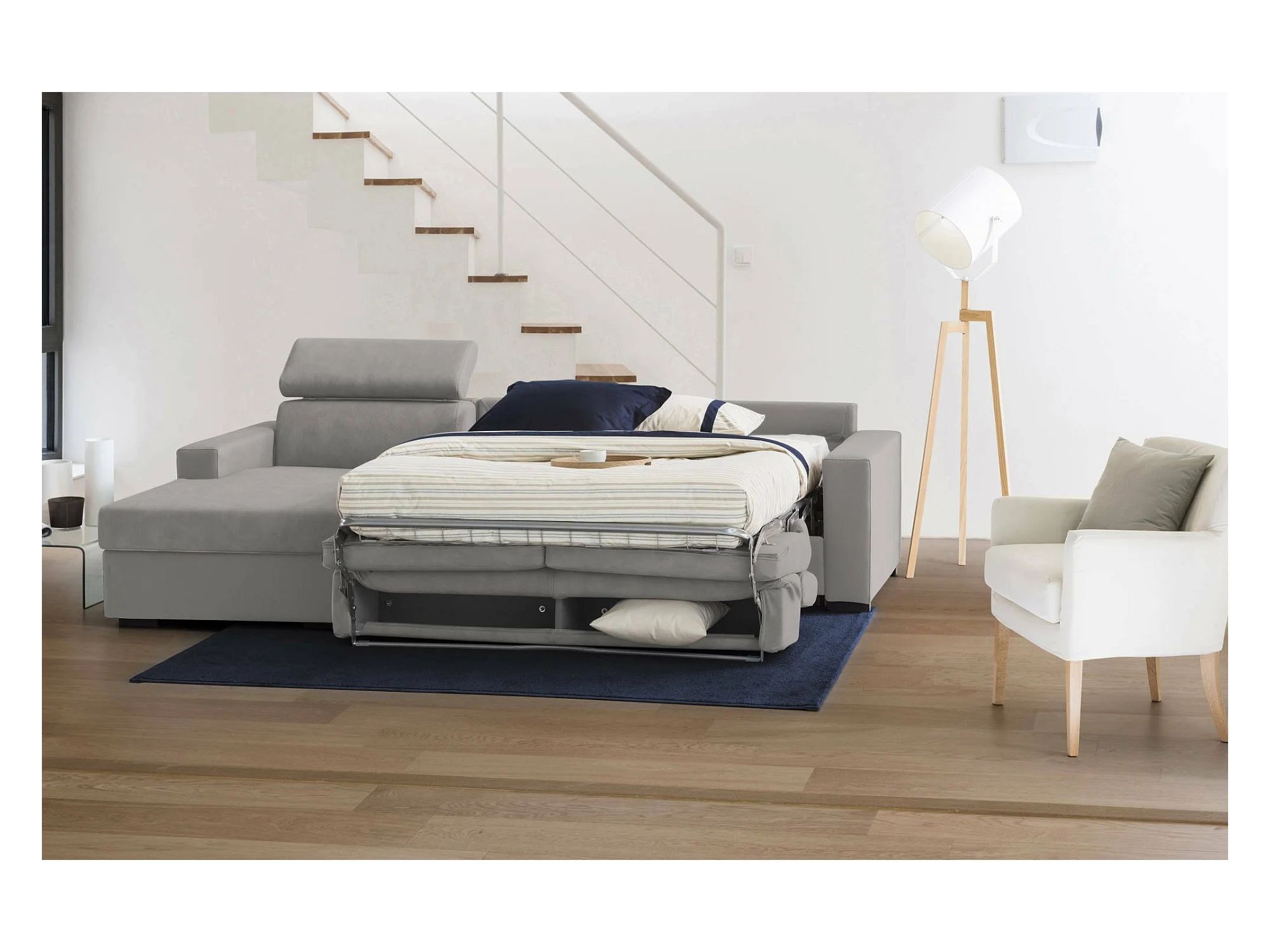 Schlafsofa Daatou, Ecksofa, 100% Made in Italy, Sofa mit Drehöffnung, mit linker Behälterhalbinsel, mit schmalen Armlehnen, Cm 260x95h85, Grau