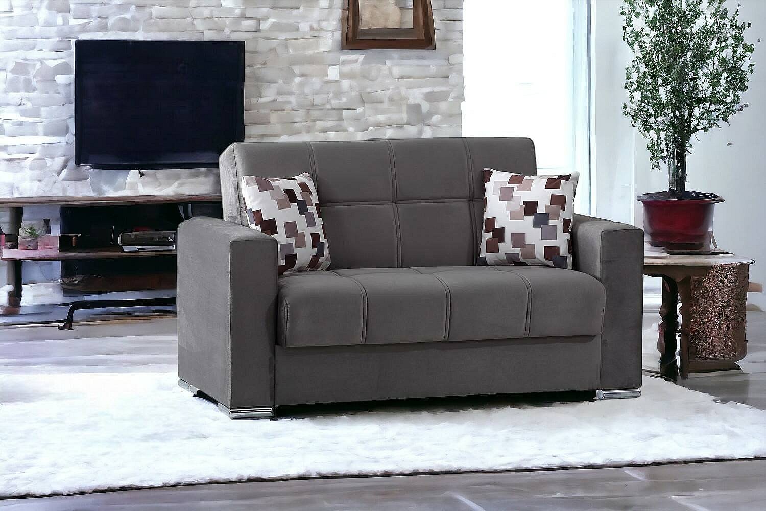 Schlafsofa Dgosen, Lineares 2-Sitzer-Container-Schlafsofa, Wohnzimmersofa aus gepolstertem Stoff mit Klick-Klack-Öffnung, 160x85h91 cm, Grau