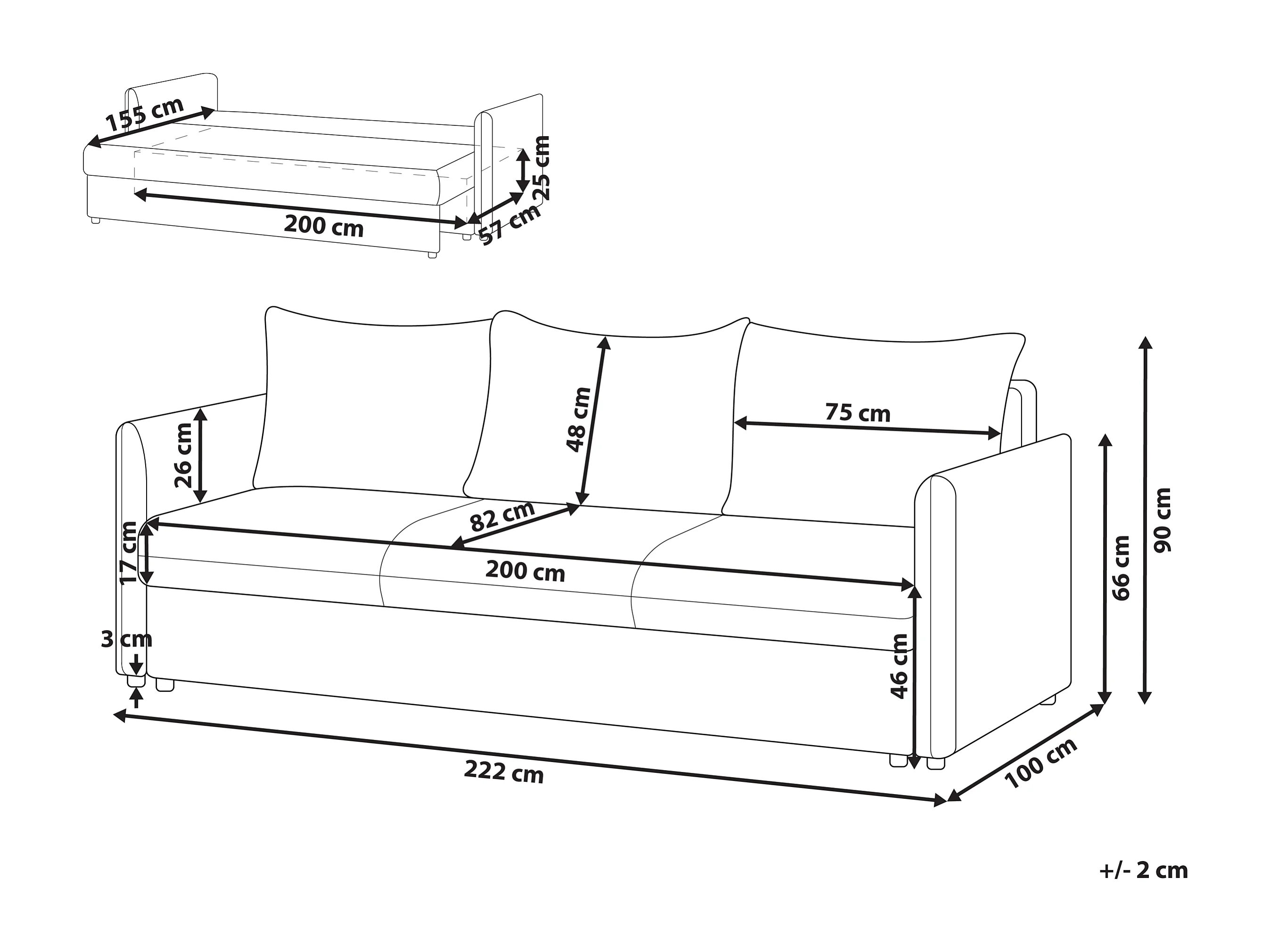 Schlafsofa Stoff braun taupe mit Kissen 3-Sitzer Polstersofa Holsen