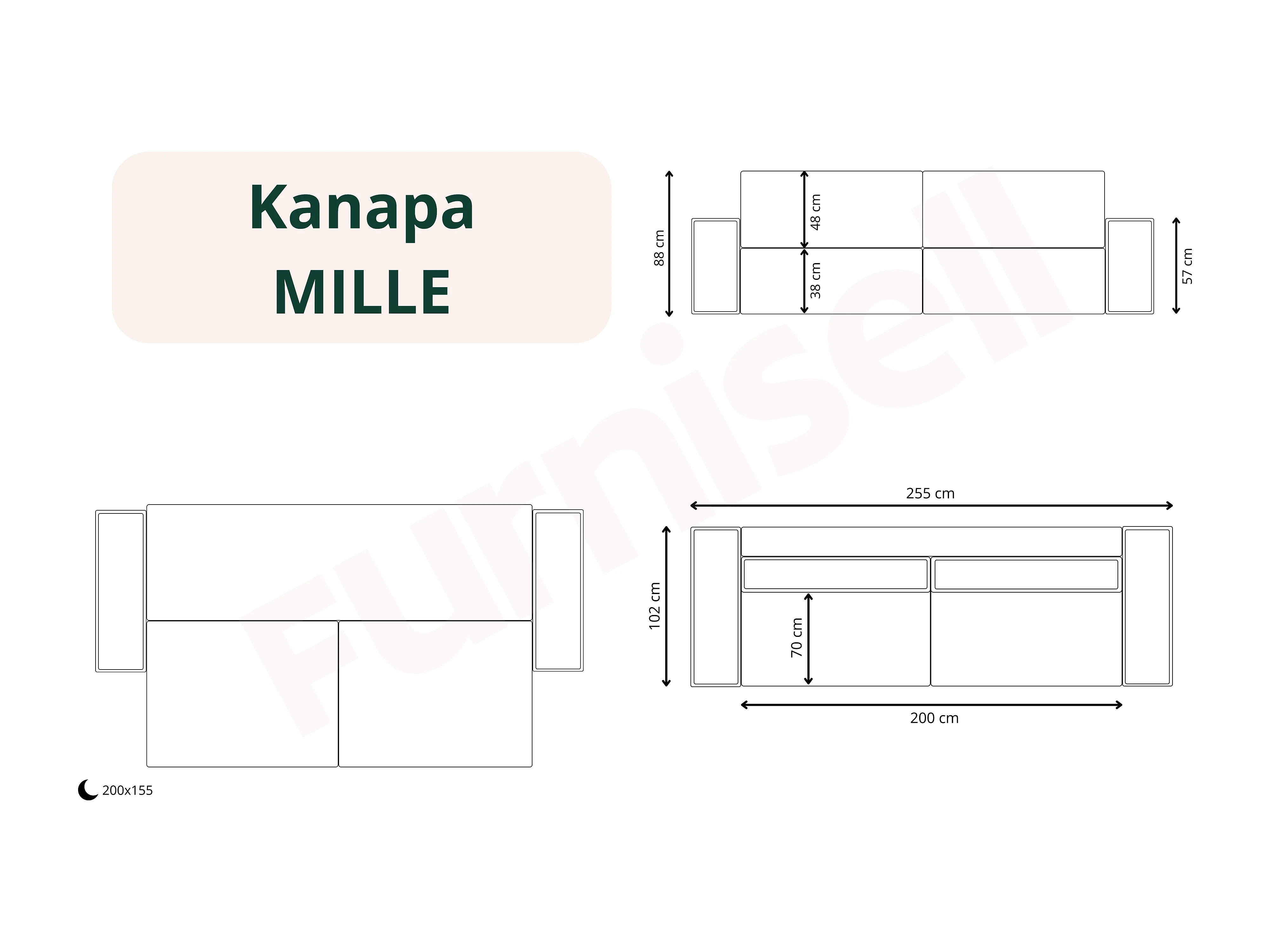Schlafsofa mit Bettkasten MILLE Mini Sand