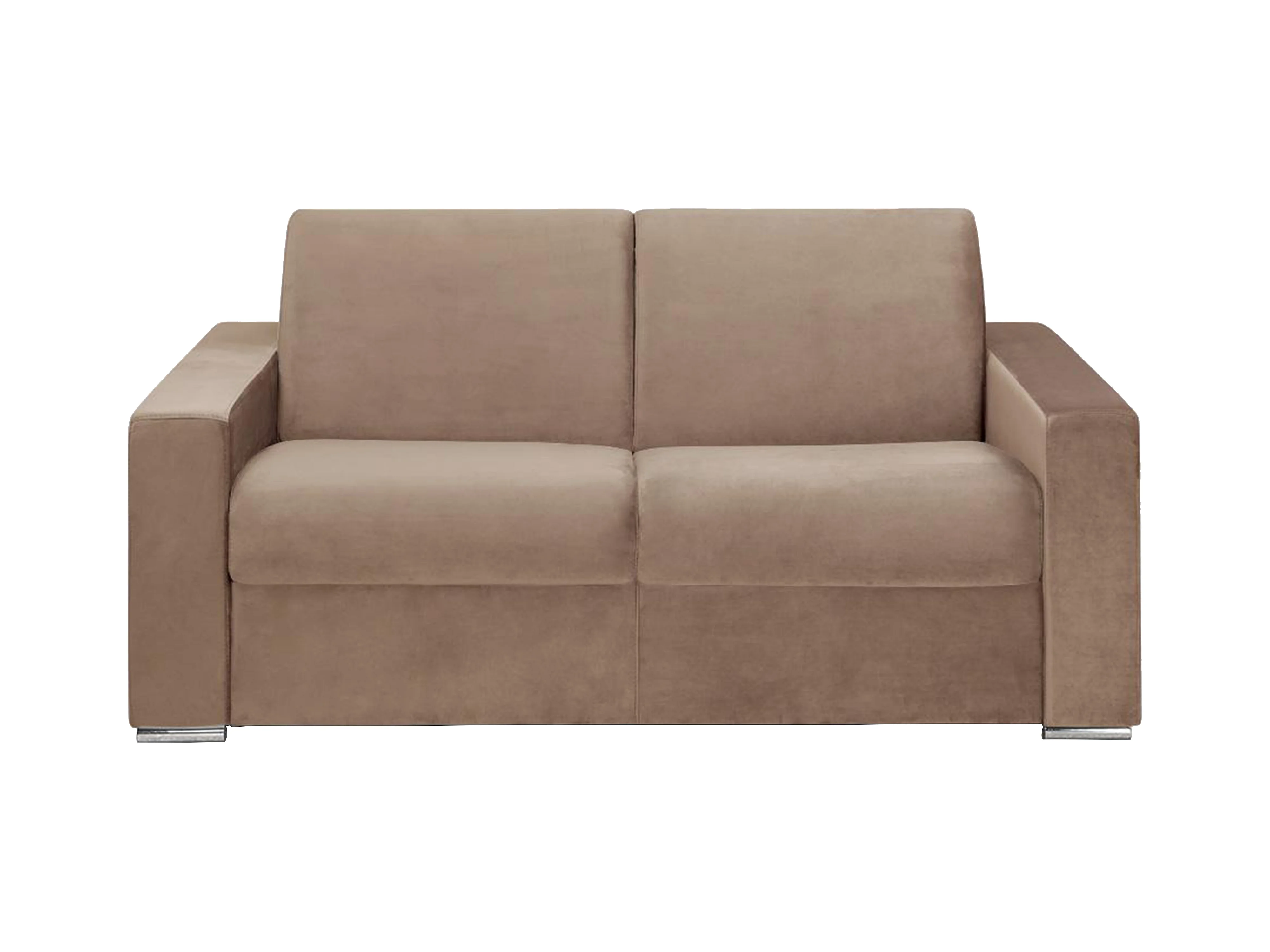 Schlafsofa mit Matratze 2-Sitzer Samt - Beige - Liegefläche mit Lattenrost: 120 cm - Matratzenhöhe: 16 cm mit Memory Schaum - CALITO