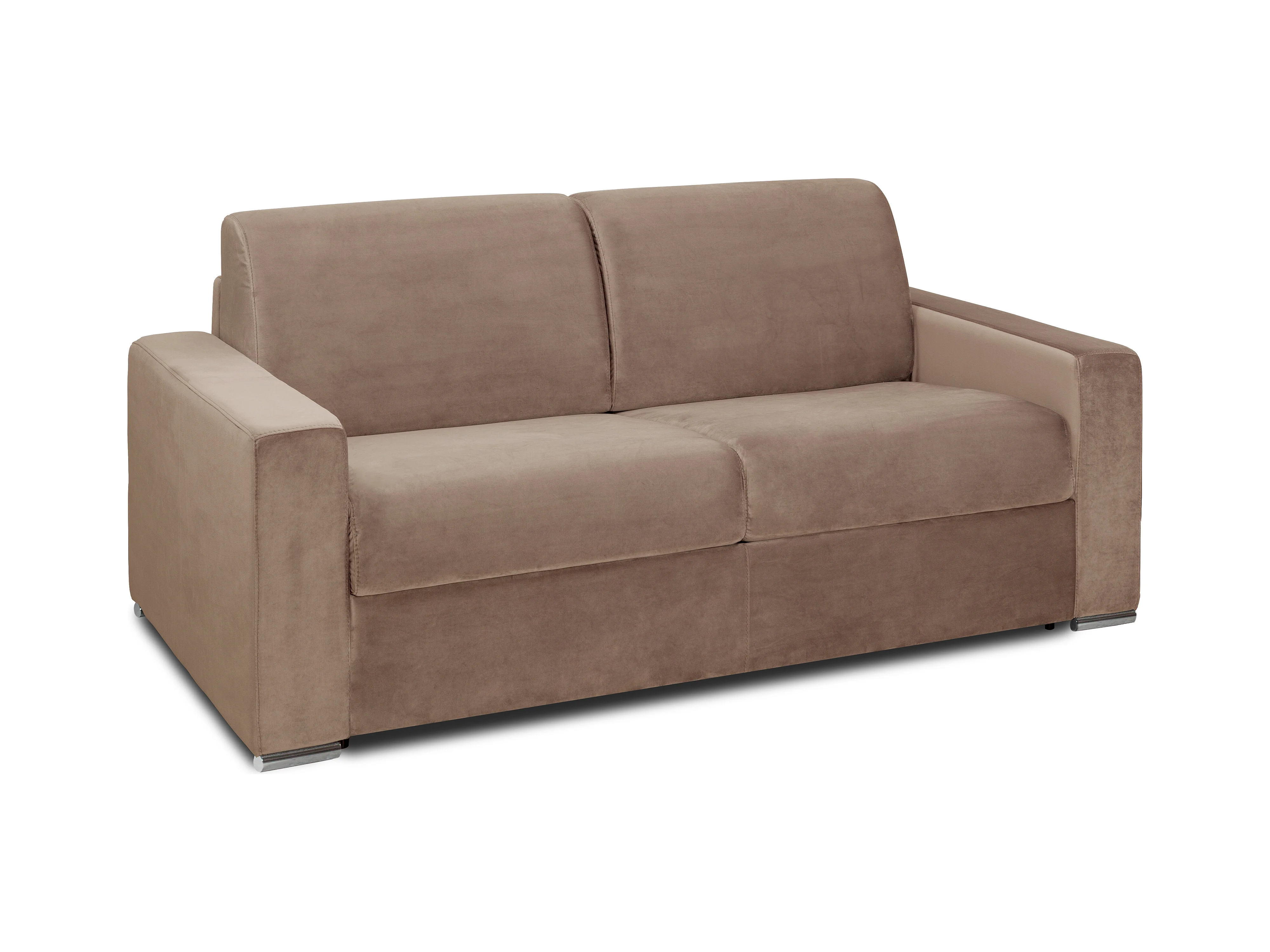 Schlafsofa mit Matratze 4-Sitzer - Liegefläche: 160 cm - Matratzenhöhe: 14 cm - Samt - Beige - CALITO