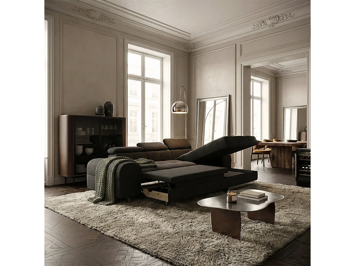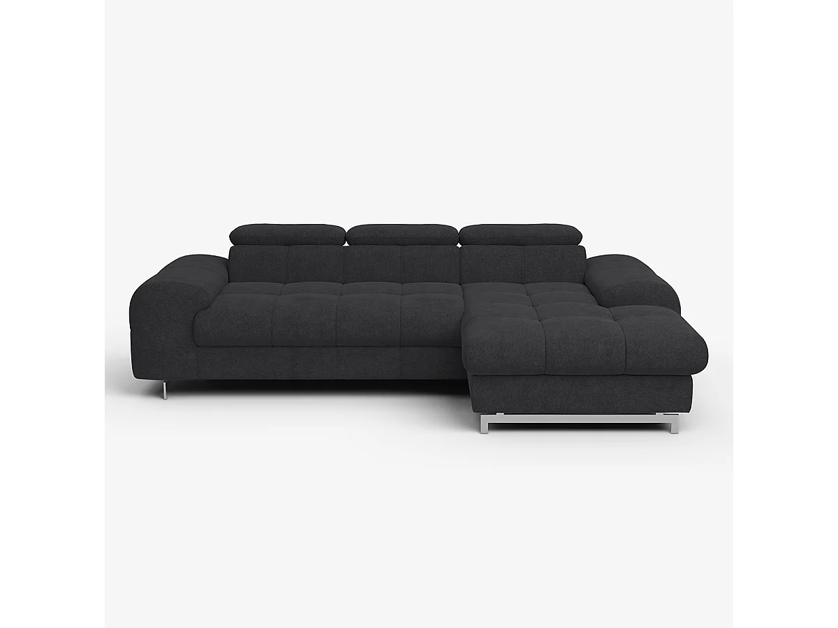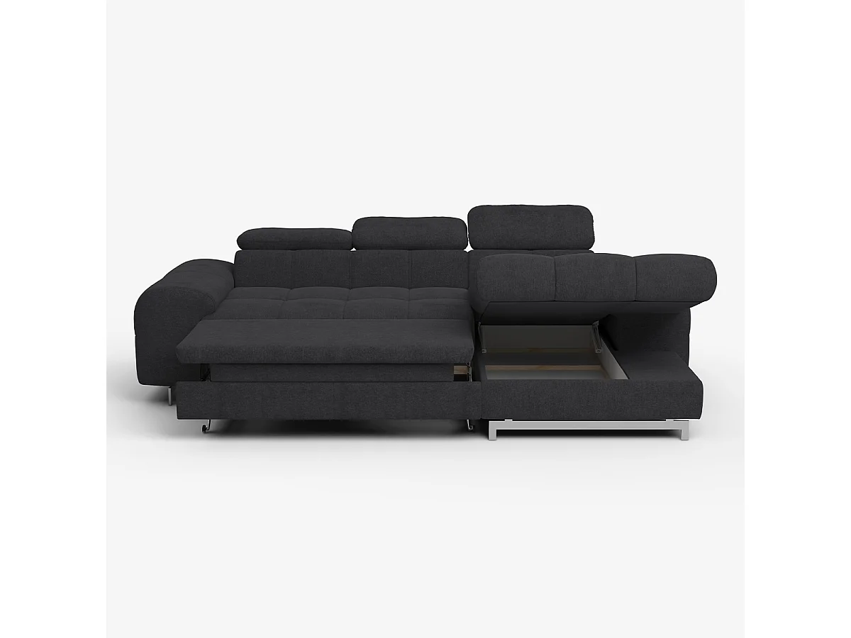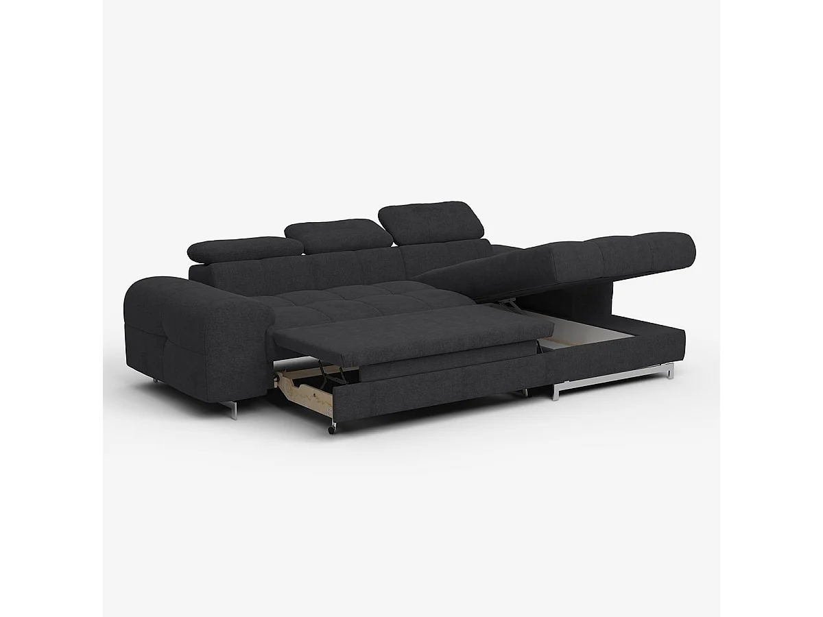 Schlafsofa mit rechter Ottomane, Stauraum und verstellbarer Kopfstütze Eluna - Schwarz