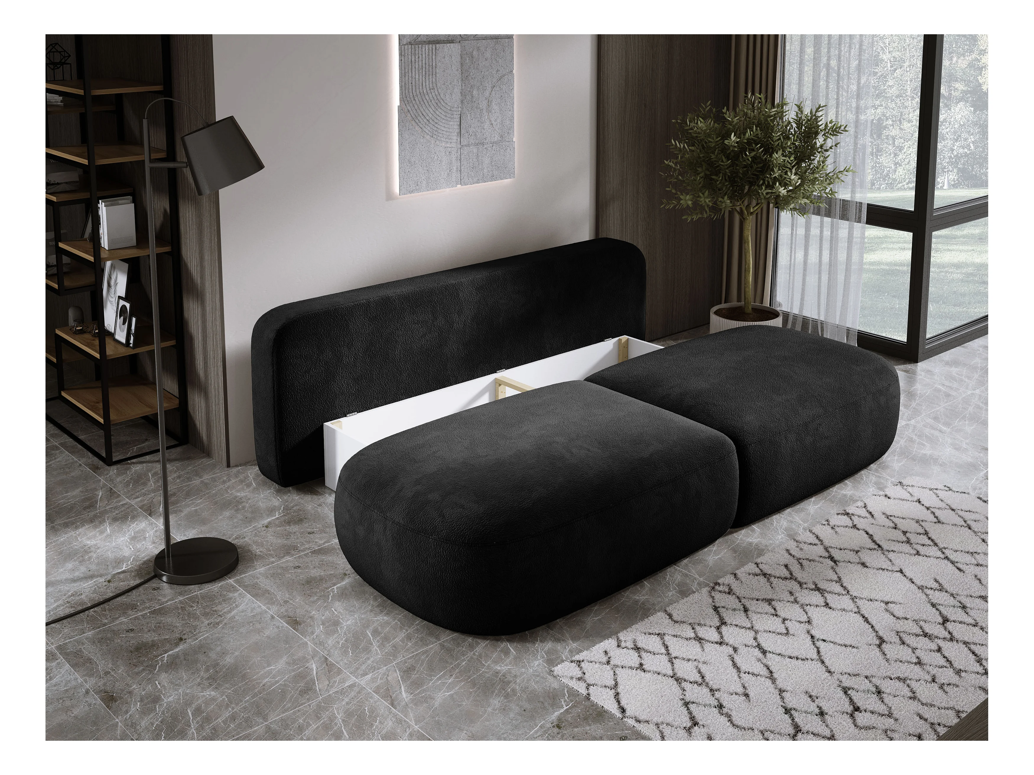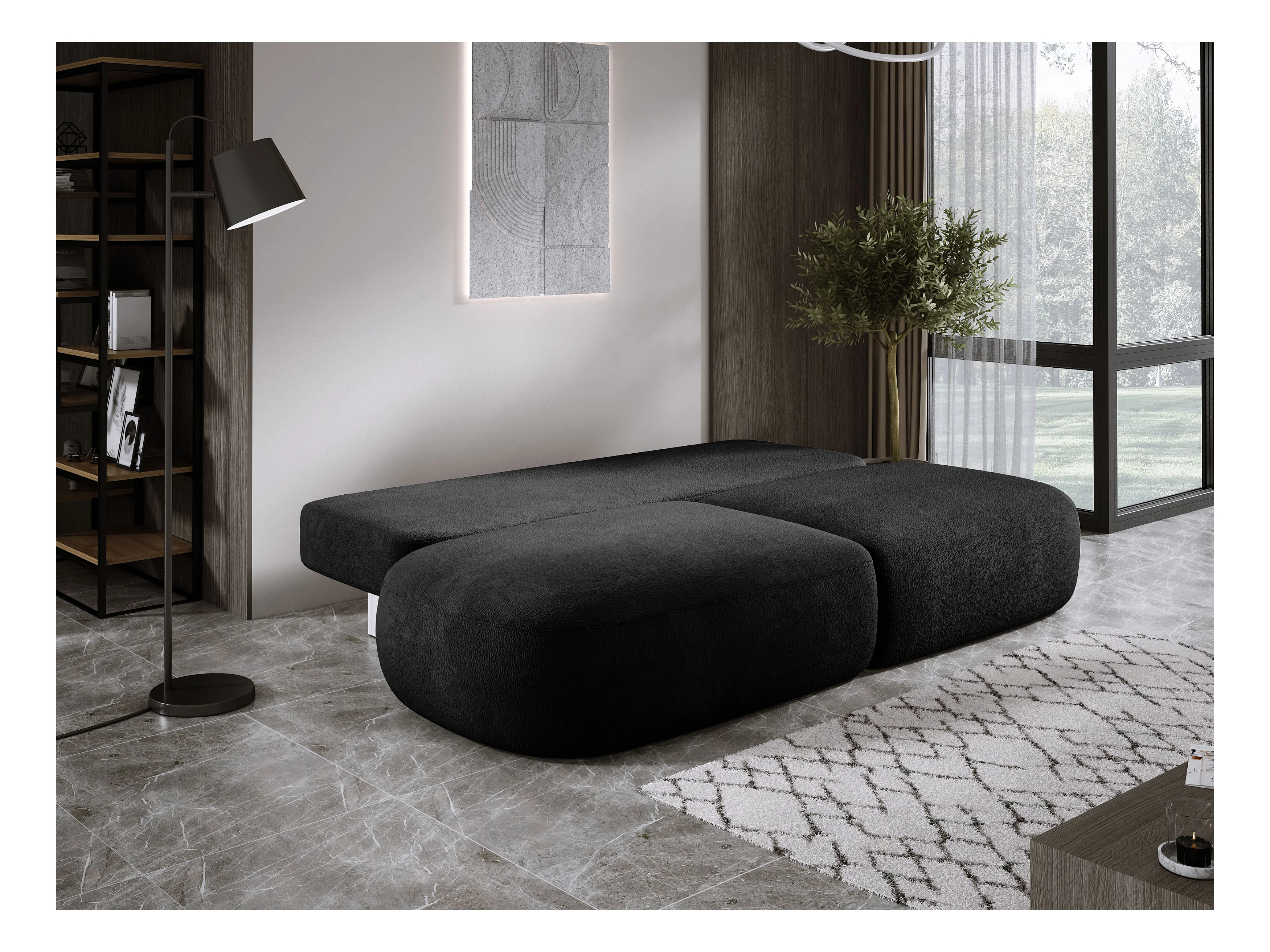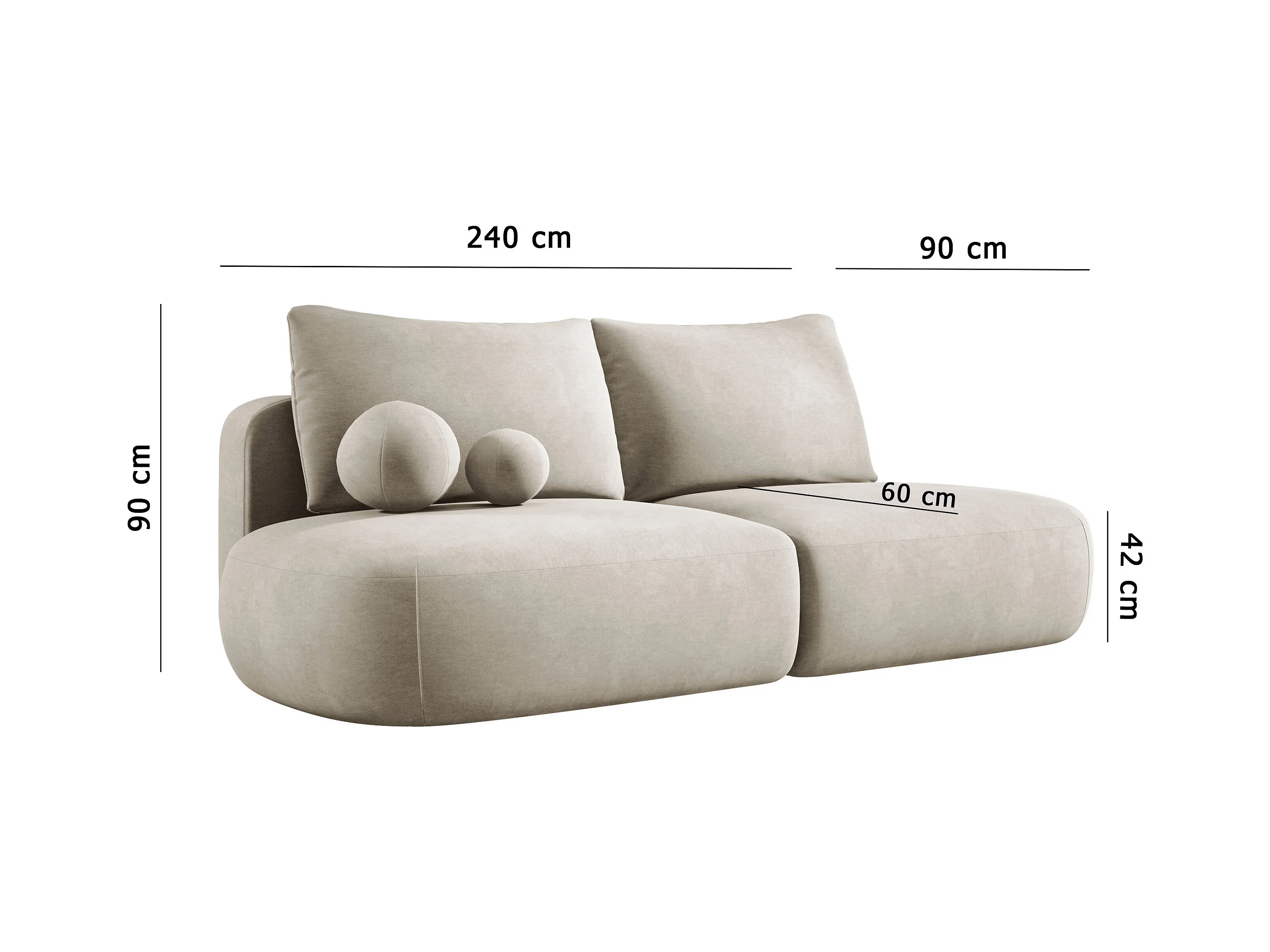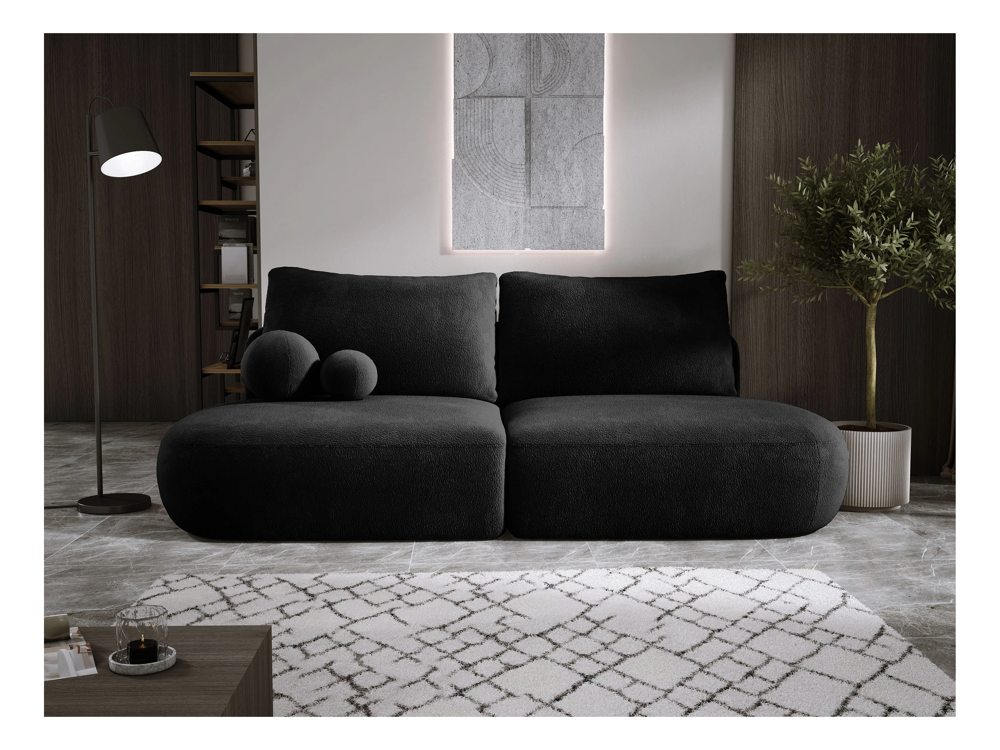 Schlafsofa Moderne BABU mit Schlaffunktion – 3-Sitzer Sofa mit Bettkasten, DL-Automat, 2 Rückenkissen, 2 Zierkissen, 240x90x90 cm Schwarz