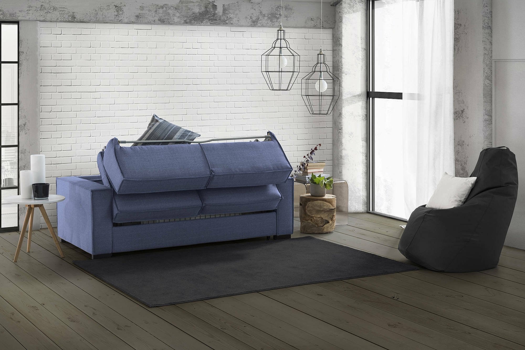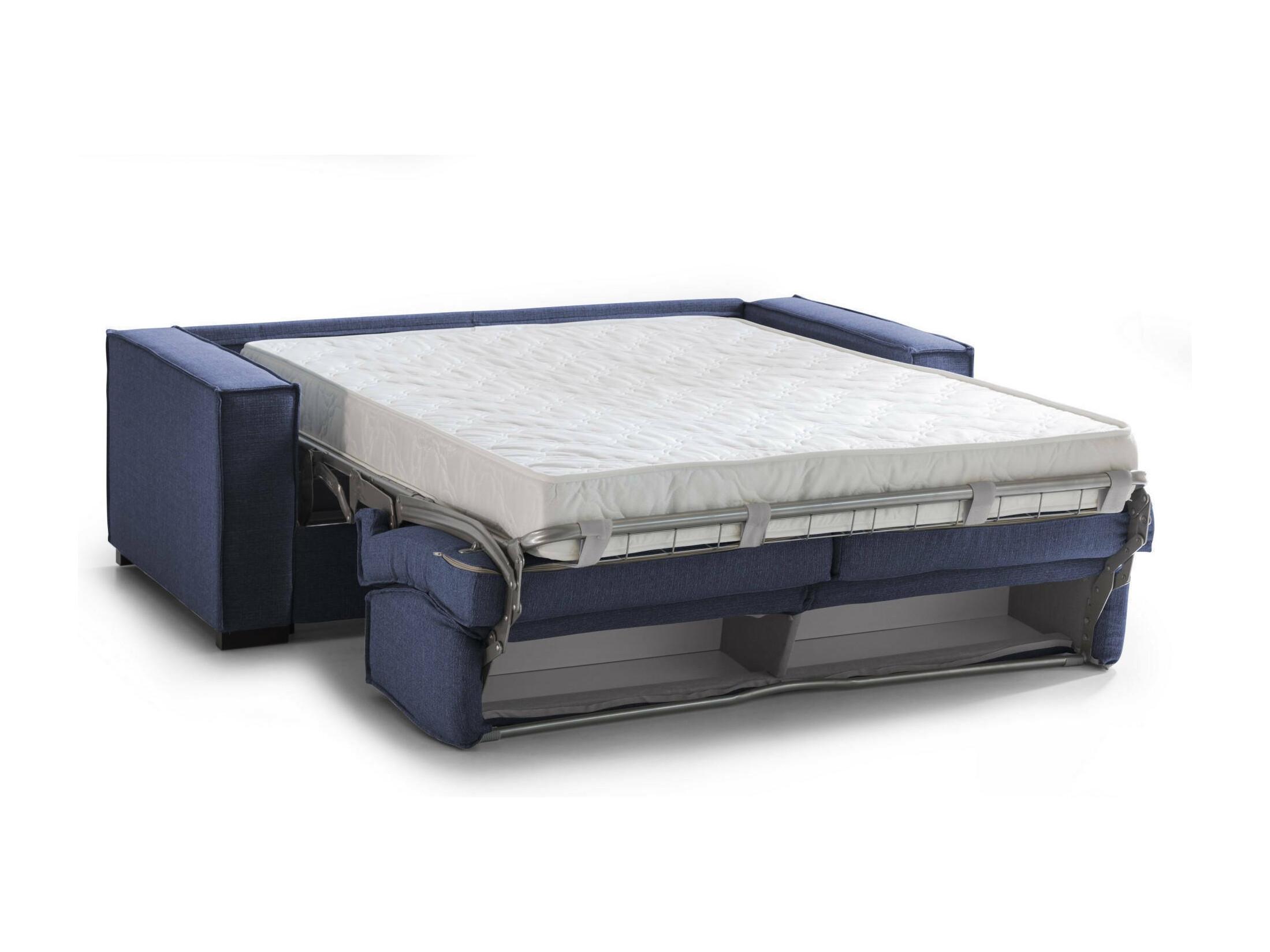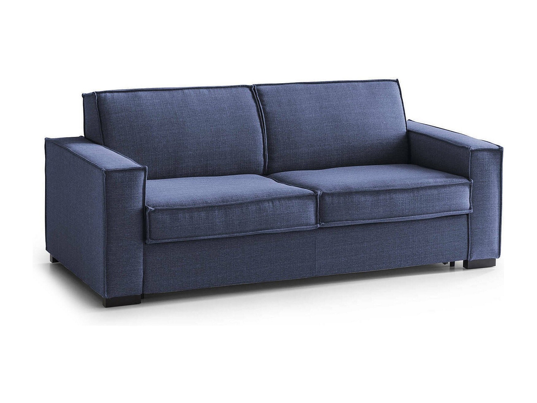 Sofá cama 2 plazas Samantha, Sofá de salón con apertura giratoria, Tejido acolchado con apoyabrazos finos, 100% Made in Italy, 160x95h90 cm, Azul