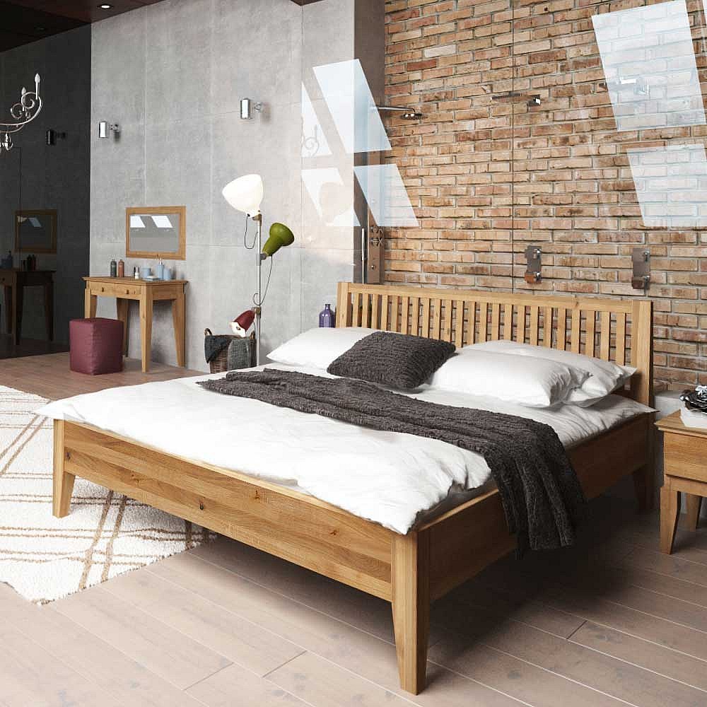 Schlafzimmer Bett aus Wildeiche Massivholz geölt