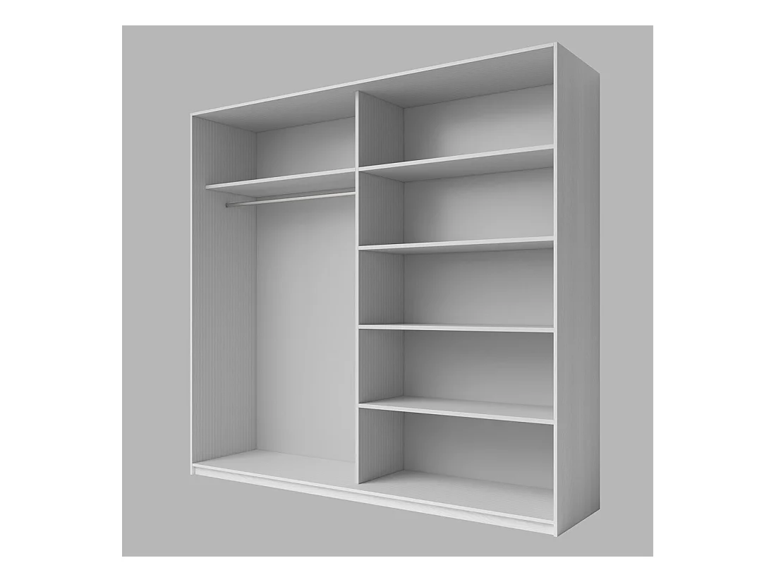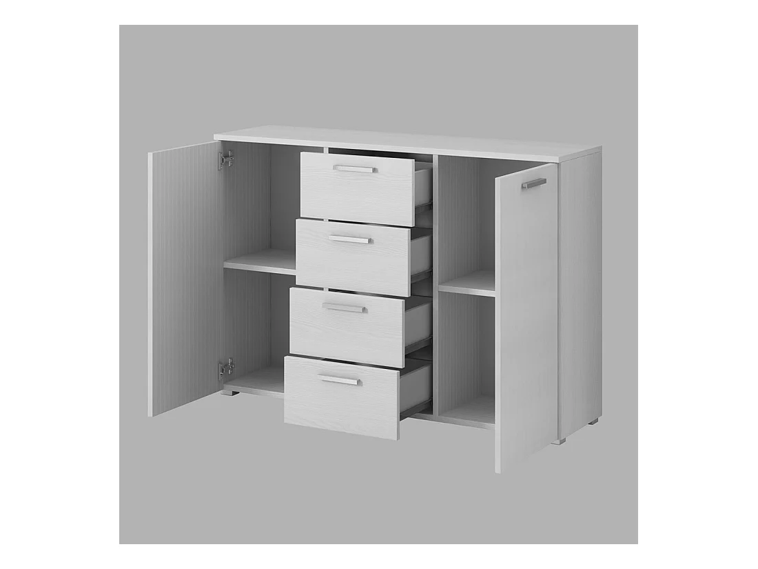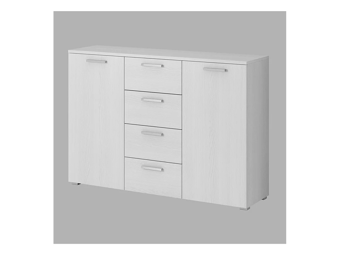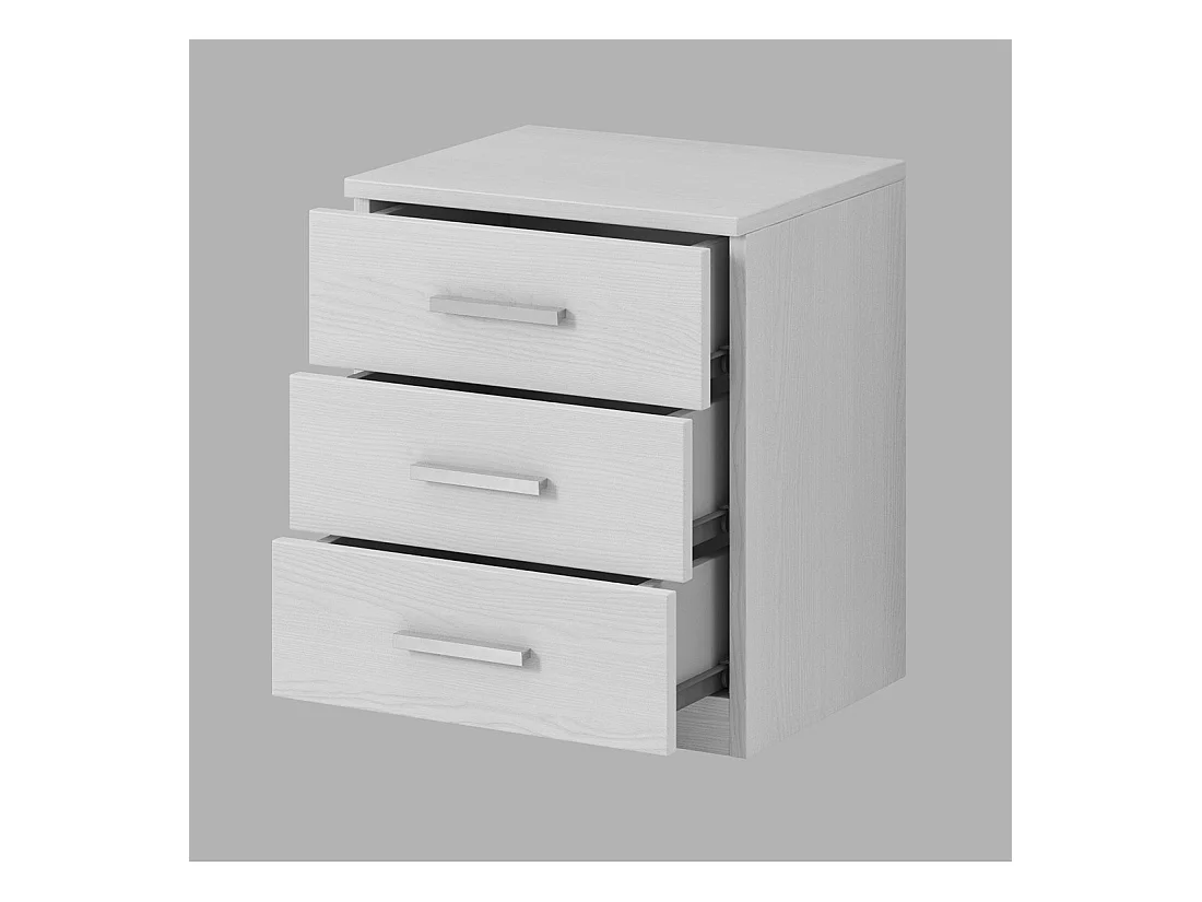 Schlafzimmer FLOYD: Kleiderschrank 220cm, Bett 140x200, Kommode, Nachttische. Farbe Weiß mit Holzeffekt.