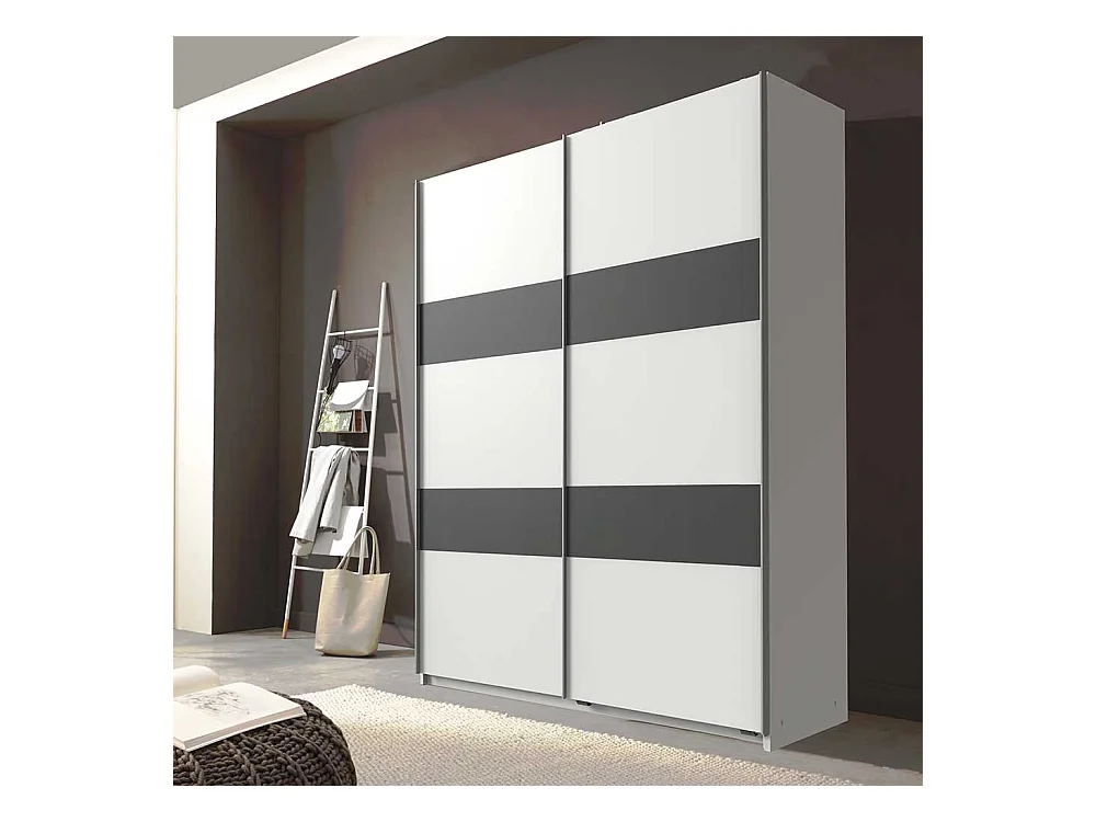 Schlafzimmer Gleittürenschrank in Weiß und Dunkelgrau 135 cm breit