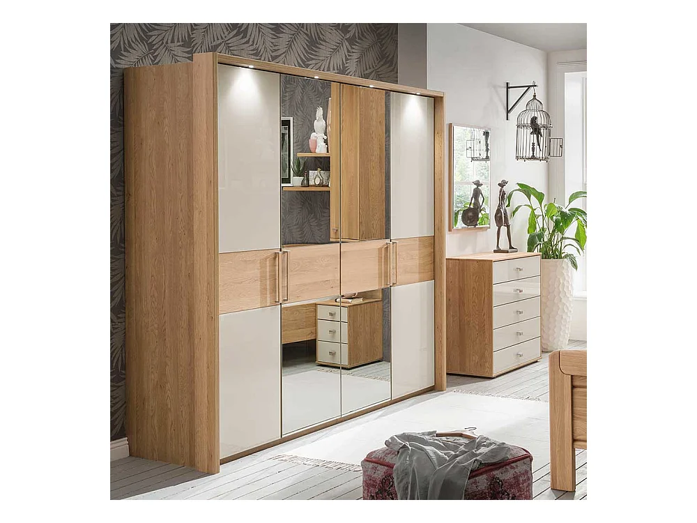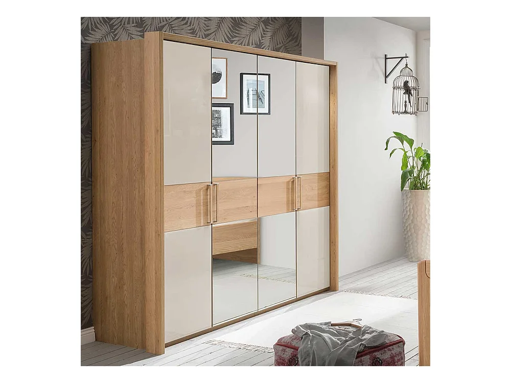 Schlafzimmer Kleiderschrank in Beige Glas beschichtet Spiegel