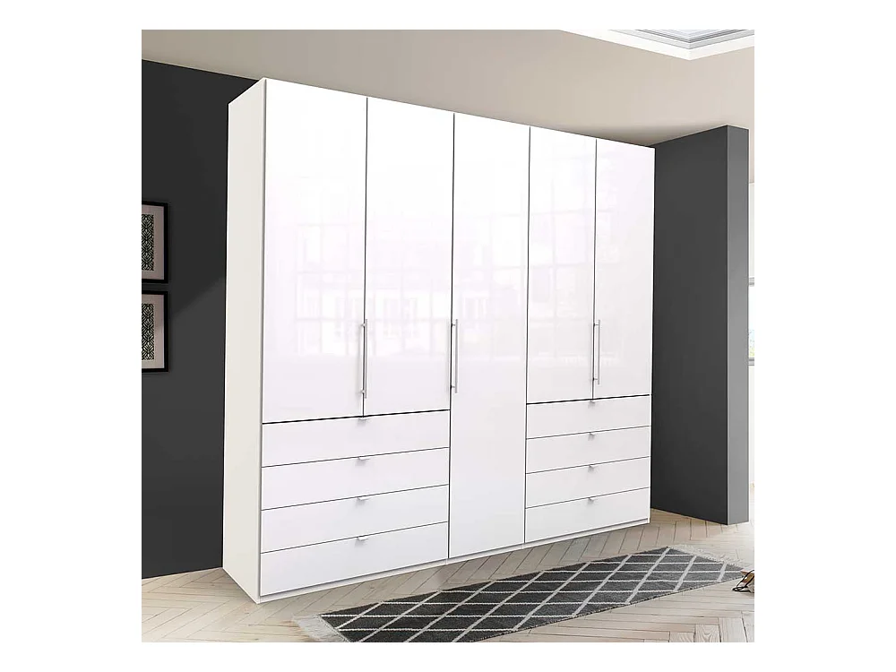 Schlafzimmer Kleiderschrank in Weiß Glas beschichtet Falttüren