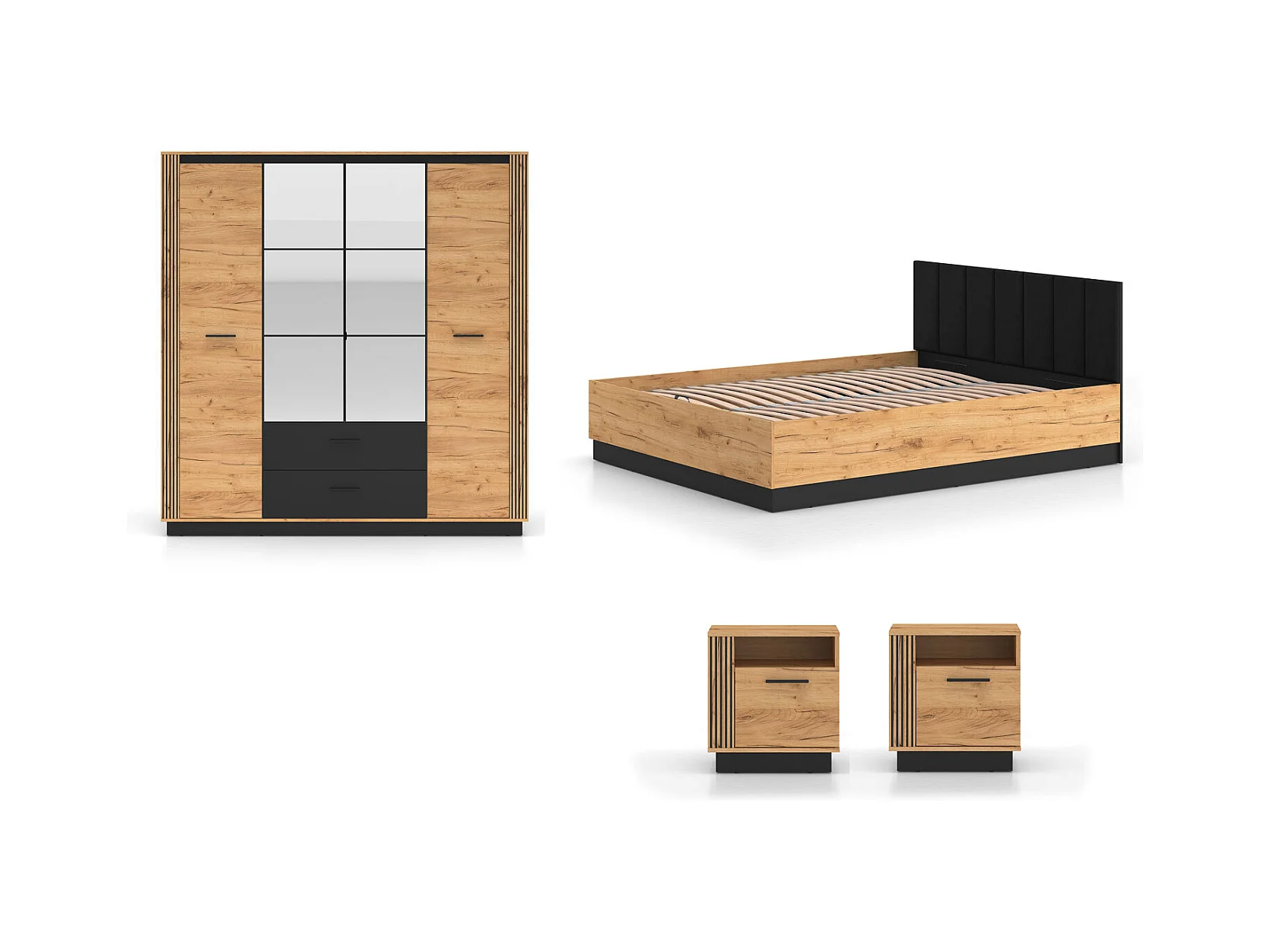 SCHLAFZIMMER-SET 4-teilig Urso Gold Craft Eiche / Schwarz