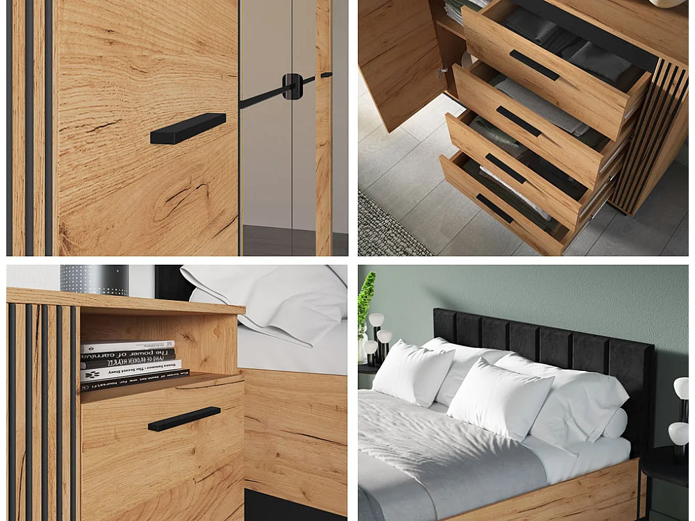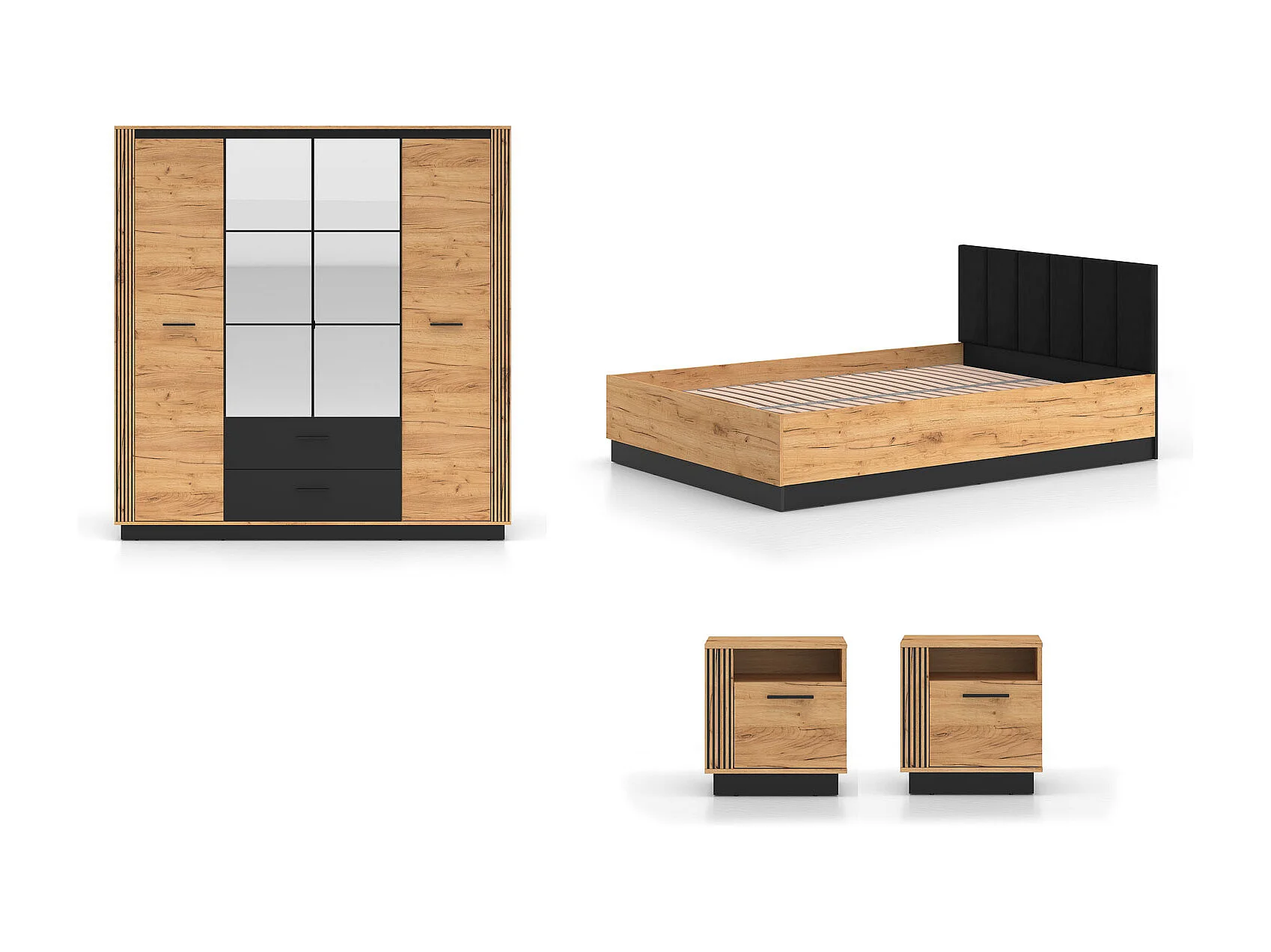 SCHLAFZIMMER-SET 4-teilig Urso Gold Craft Eiche / Schwarz