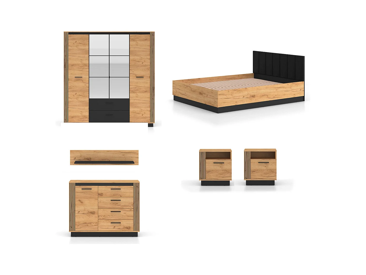 SCHLAFZIMMER-SET 6-teilig Urso Gold Craft Eiche / Schwarz