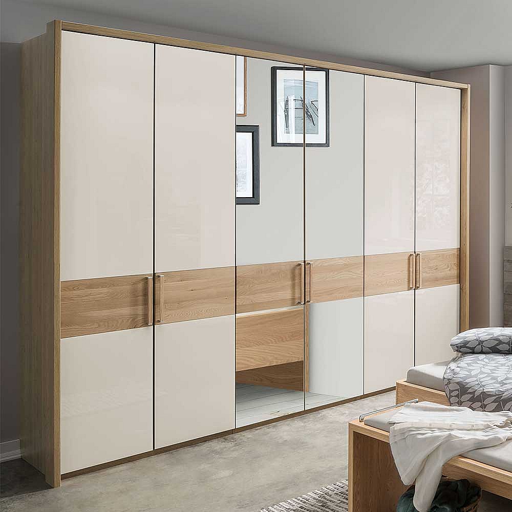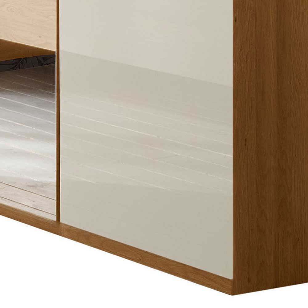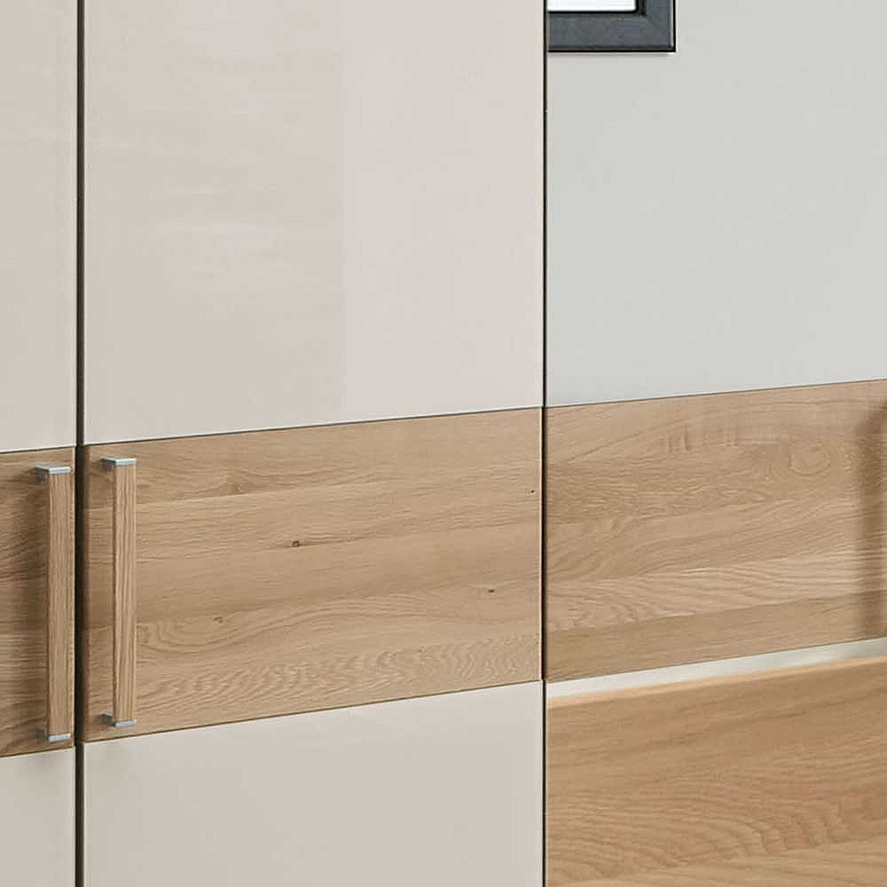 Schlafzimmerkleiderschrank in Beige Glas beschichtet Eiche Massivholz