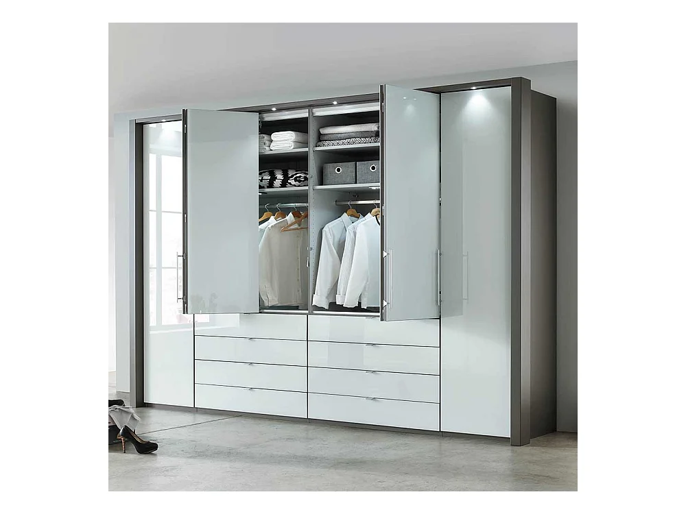 Schlafzimmerkleiderschrank in Braun und Weiß Glas beschichtet Falttüren
