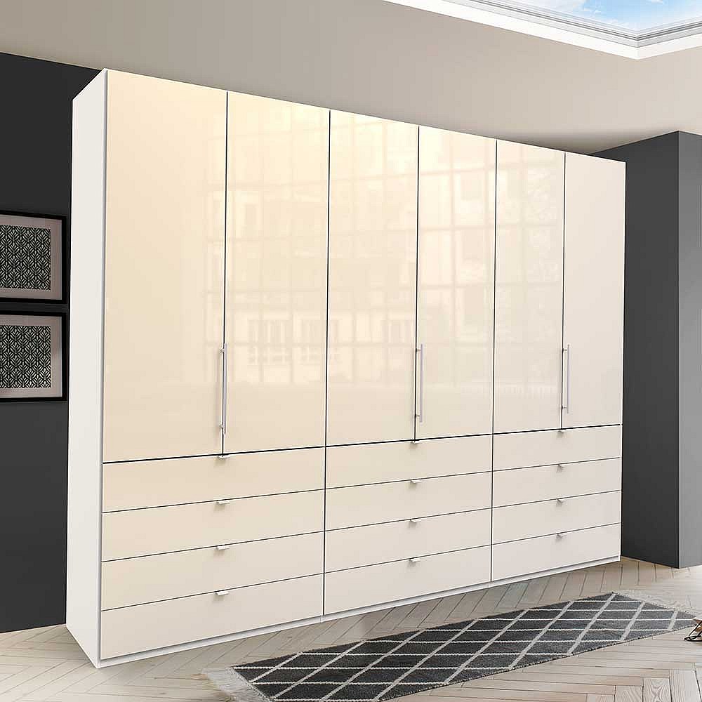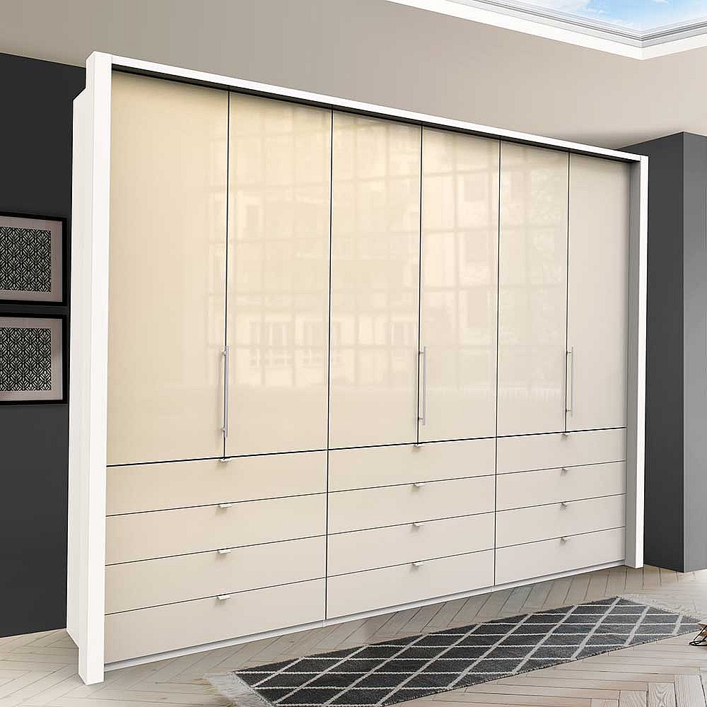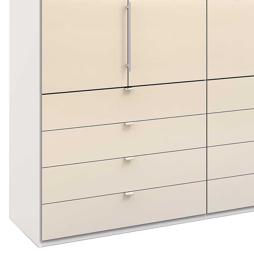 Schlafzimmerkleiderschrank in Creme Weiß Glas beschichtet Falttüren