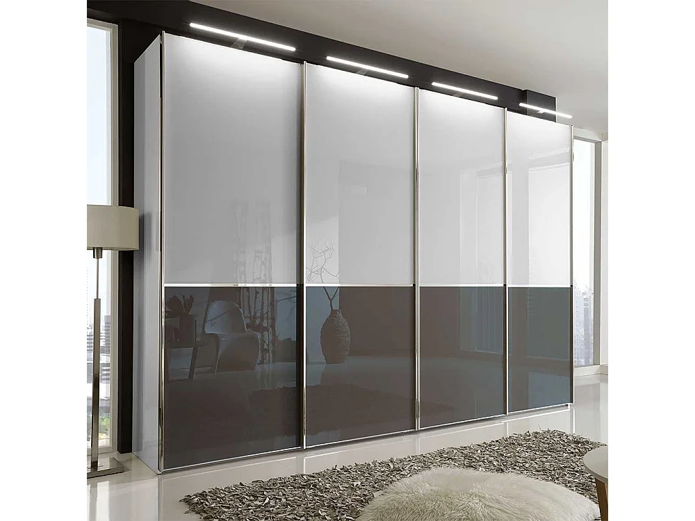Schlafzimmerkleiderschrank in Weiß und Braun Schwebetüren