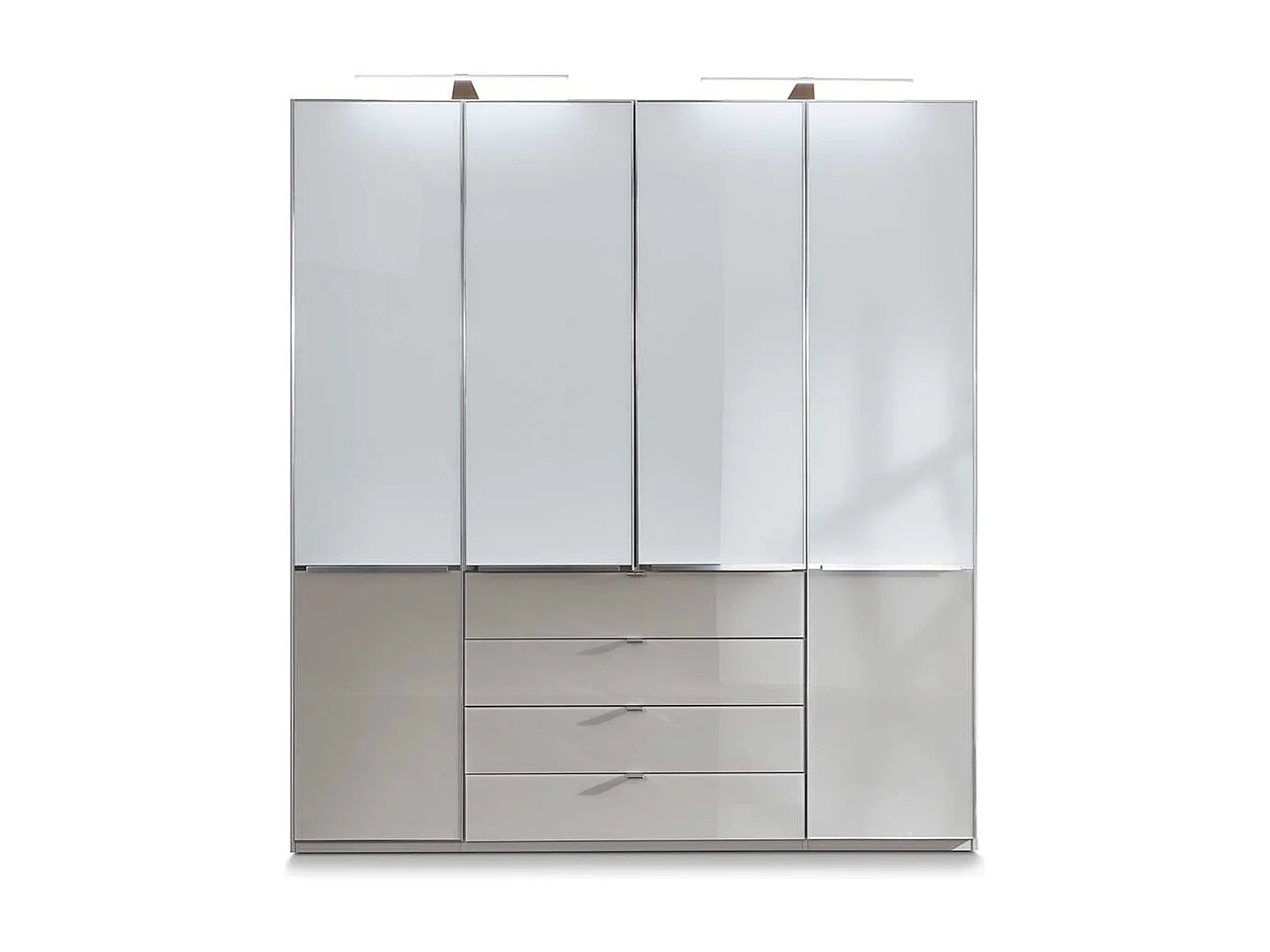 Schlafzimmerkleiderschrank in Weiß und Hellgrau Glas beschichtet