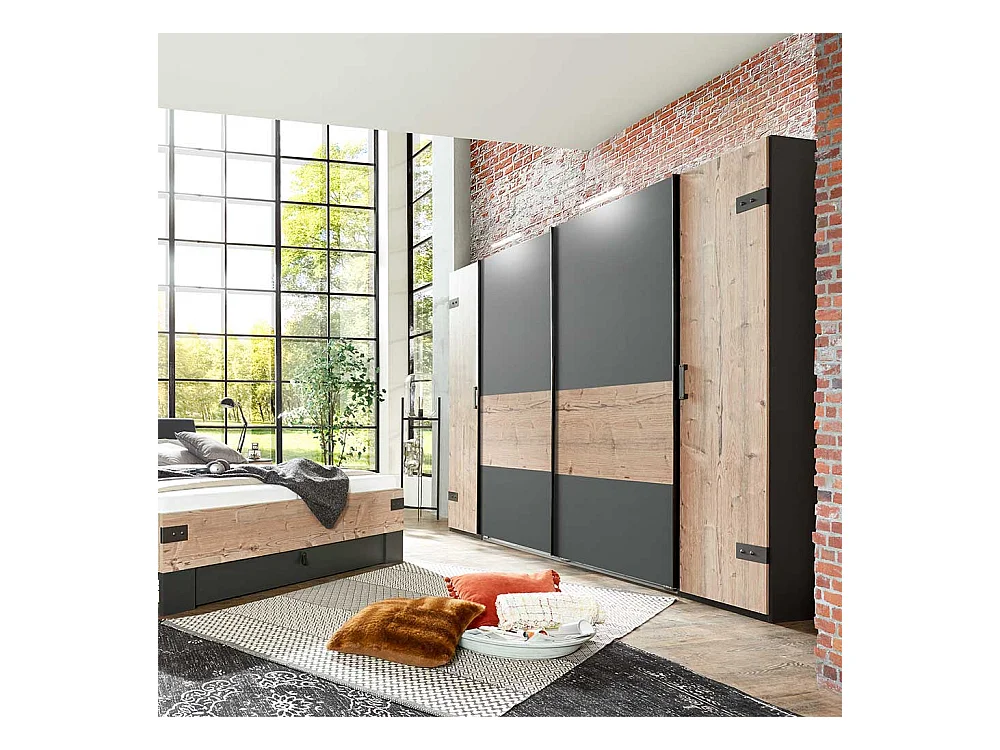 Schlafzimmerkleiderschrank Industrial mit Dreh- und Schiebetüren Made in Germany
