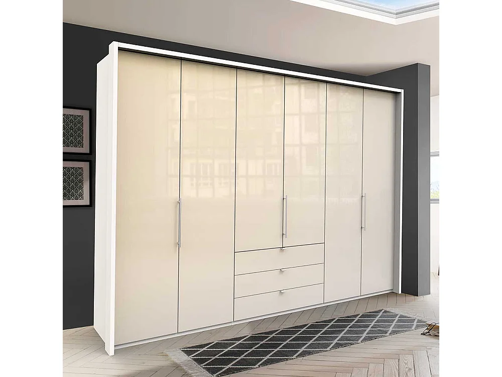 Schlafzimmerkleiderschrank mit 3 Falttüren Cremefarben