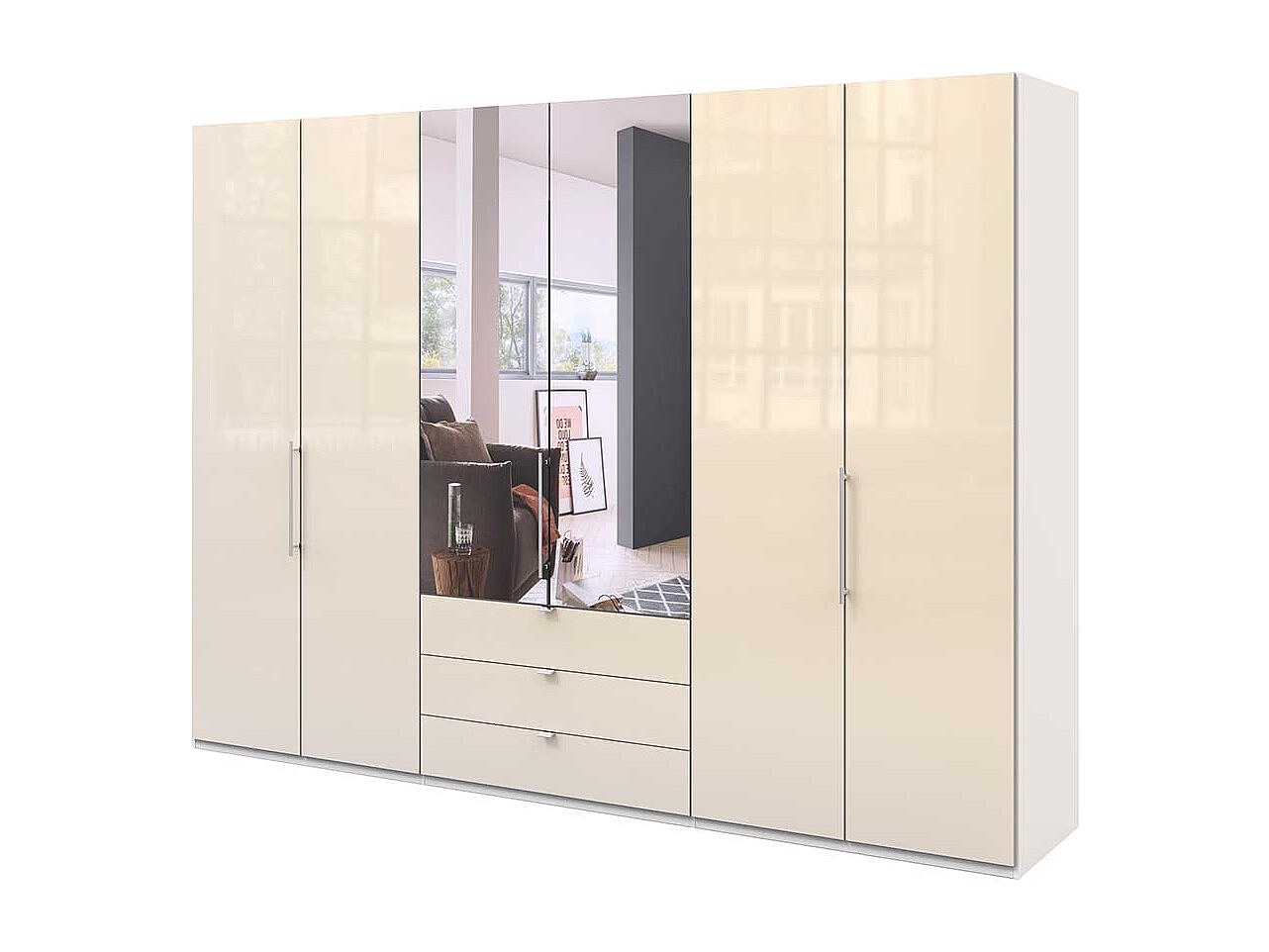 Schlafzimmerschrank 3 türig Cremefarben glasbeschichtet