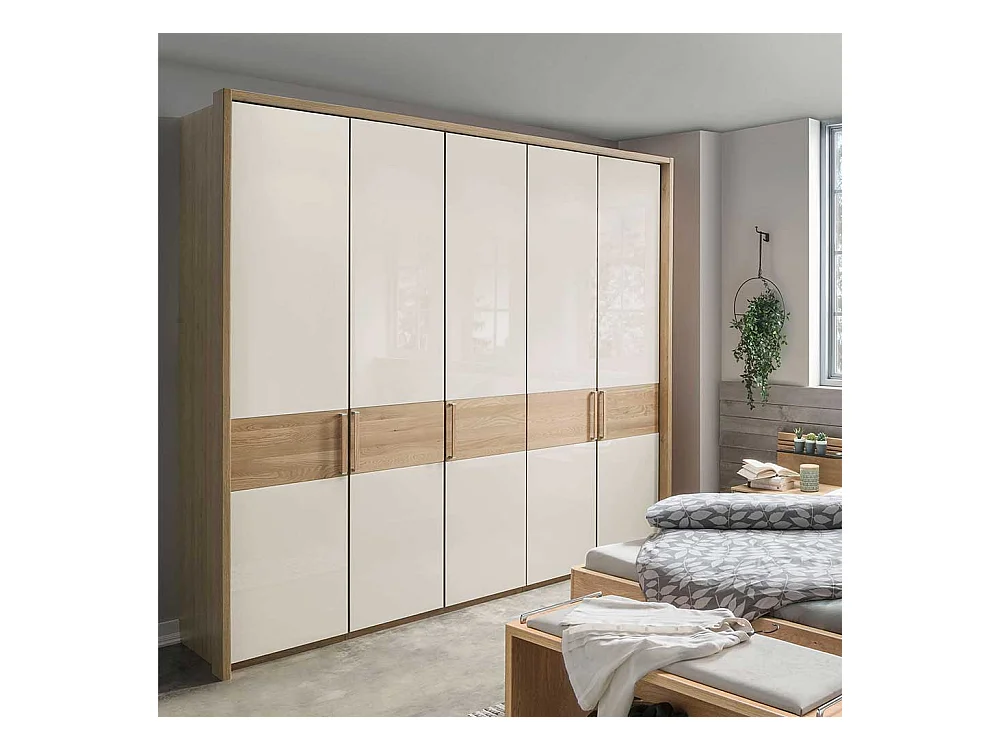 Schlafzimmerschrank in Beige Glas beschichtet Eiche