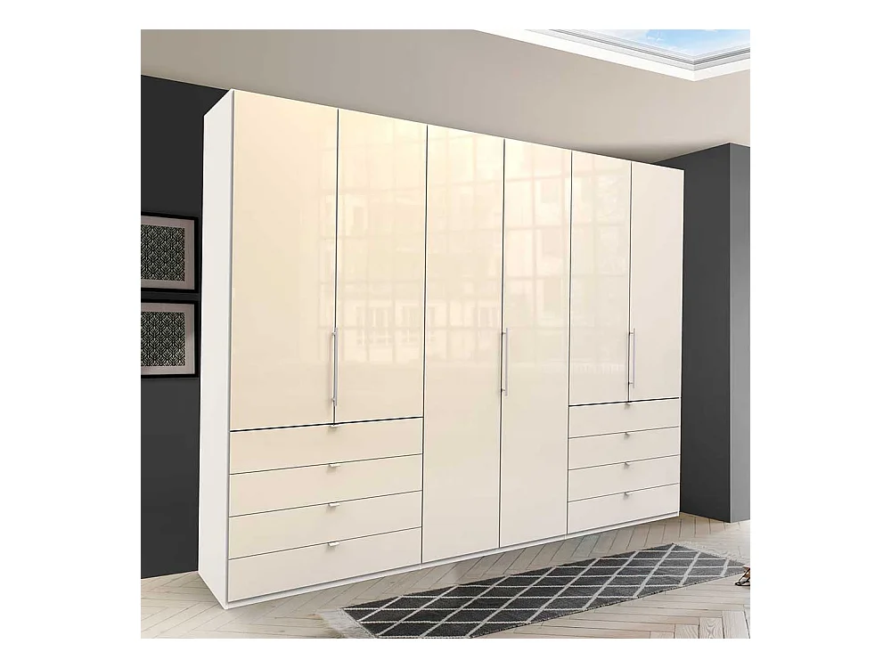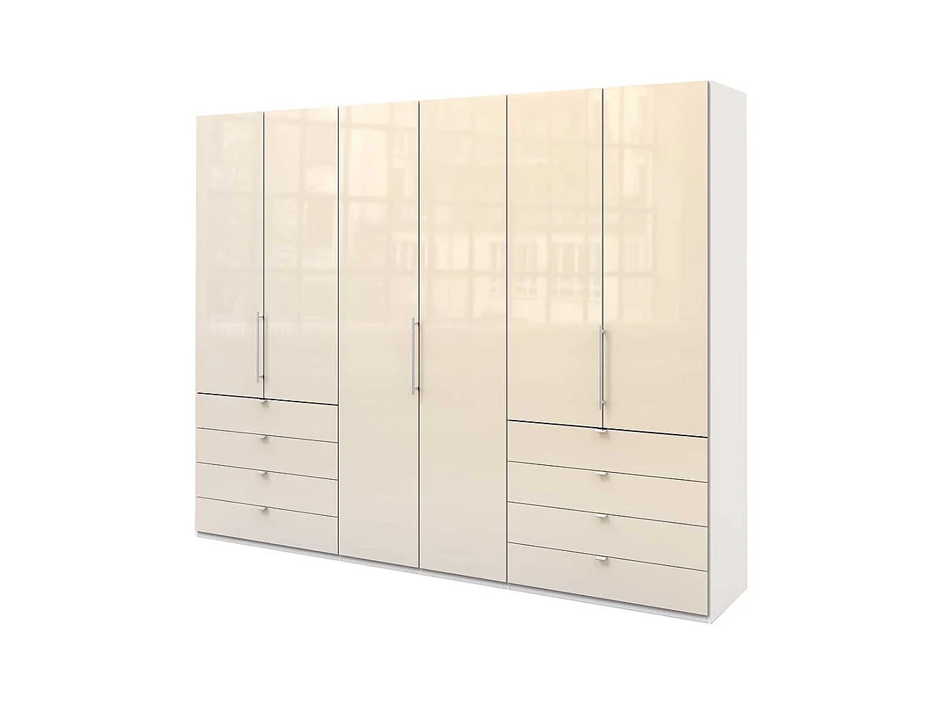 Schlafzimmerschrank in Creme Weiß Glas beschichtet Falttüren