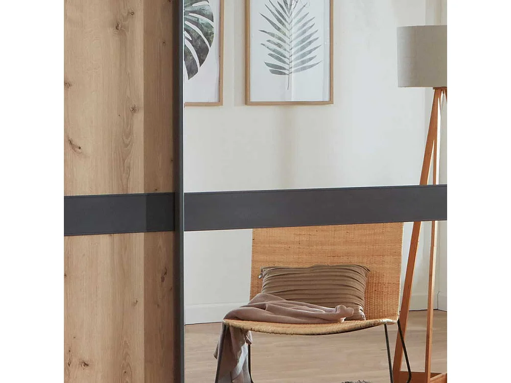 Schlafzimmerschrank in Eiche Bianco und Anthrazit Schwebetüren