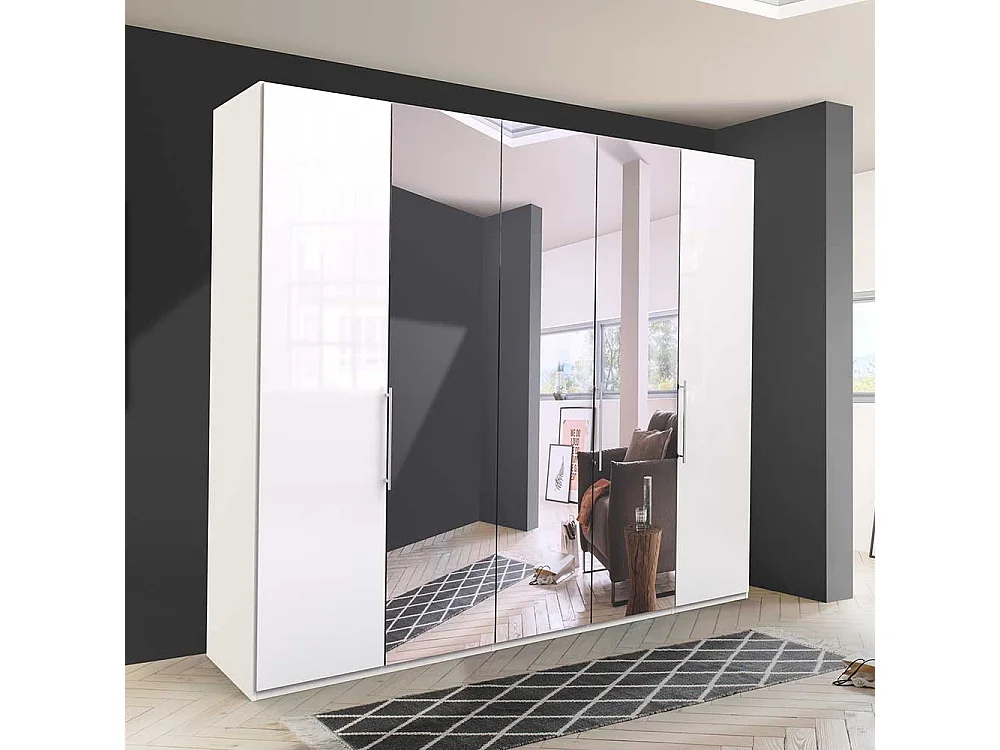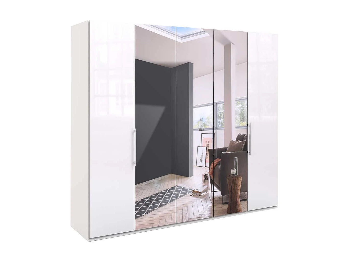 Schlafzimmerschrank in Weiß Falttüren und Spiegel
