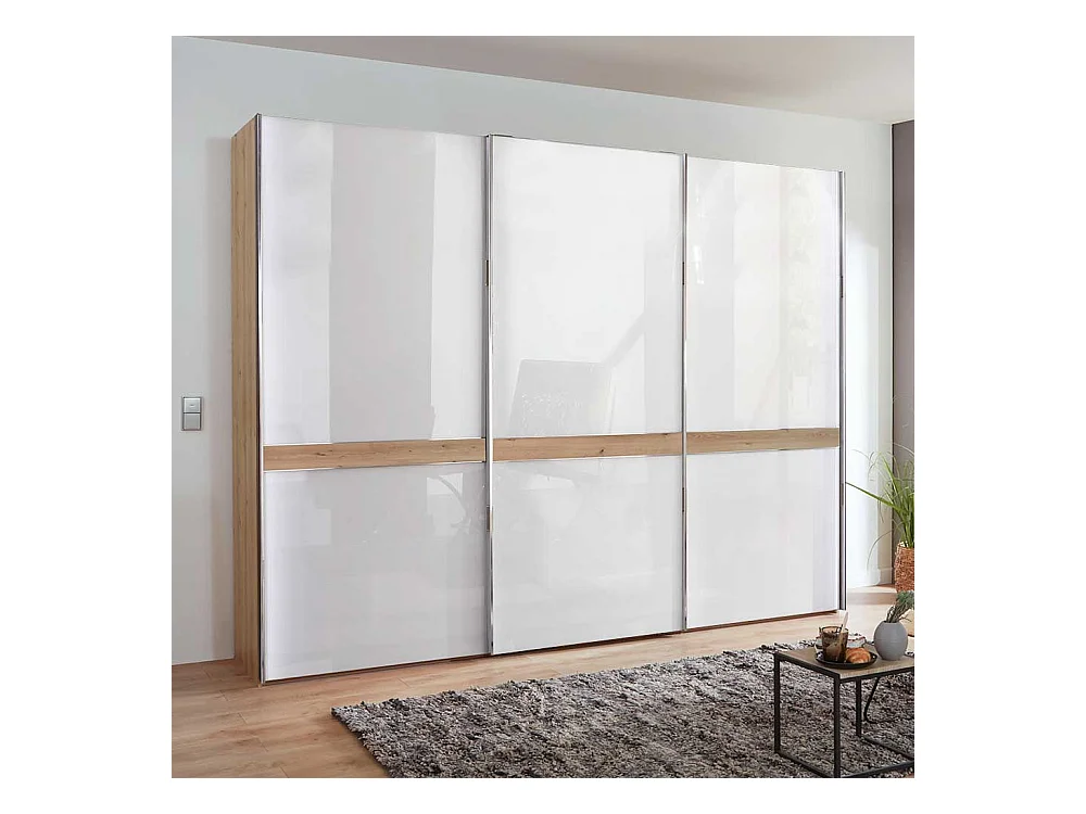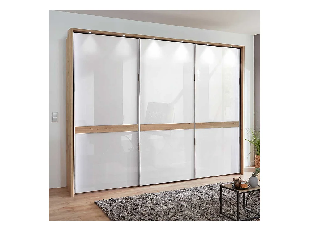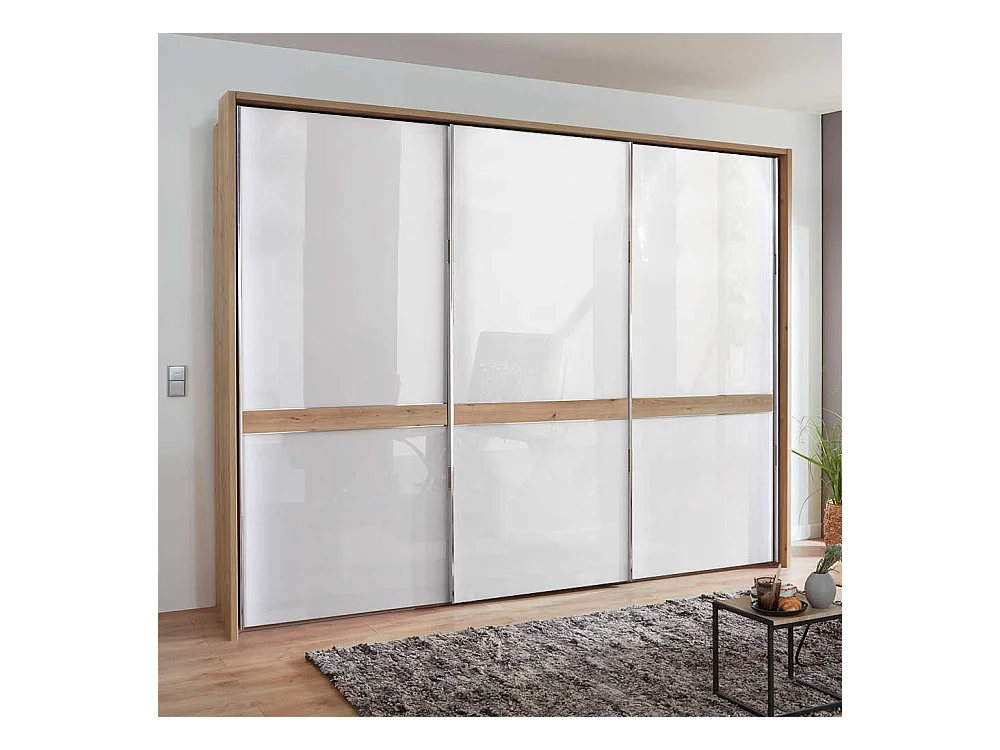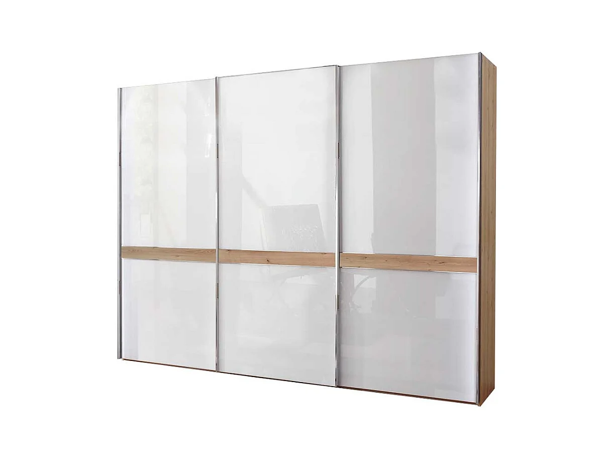 Schlafzimmerschrank in Weiß und Eiche Bianco Schwebetüren