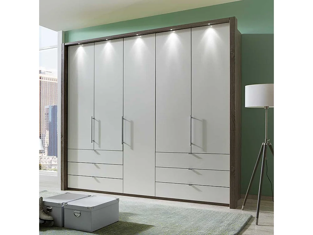 Schlafzimmerschrank mit Falttüren Weiß Eiche Trüffel