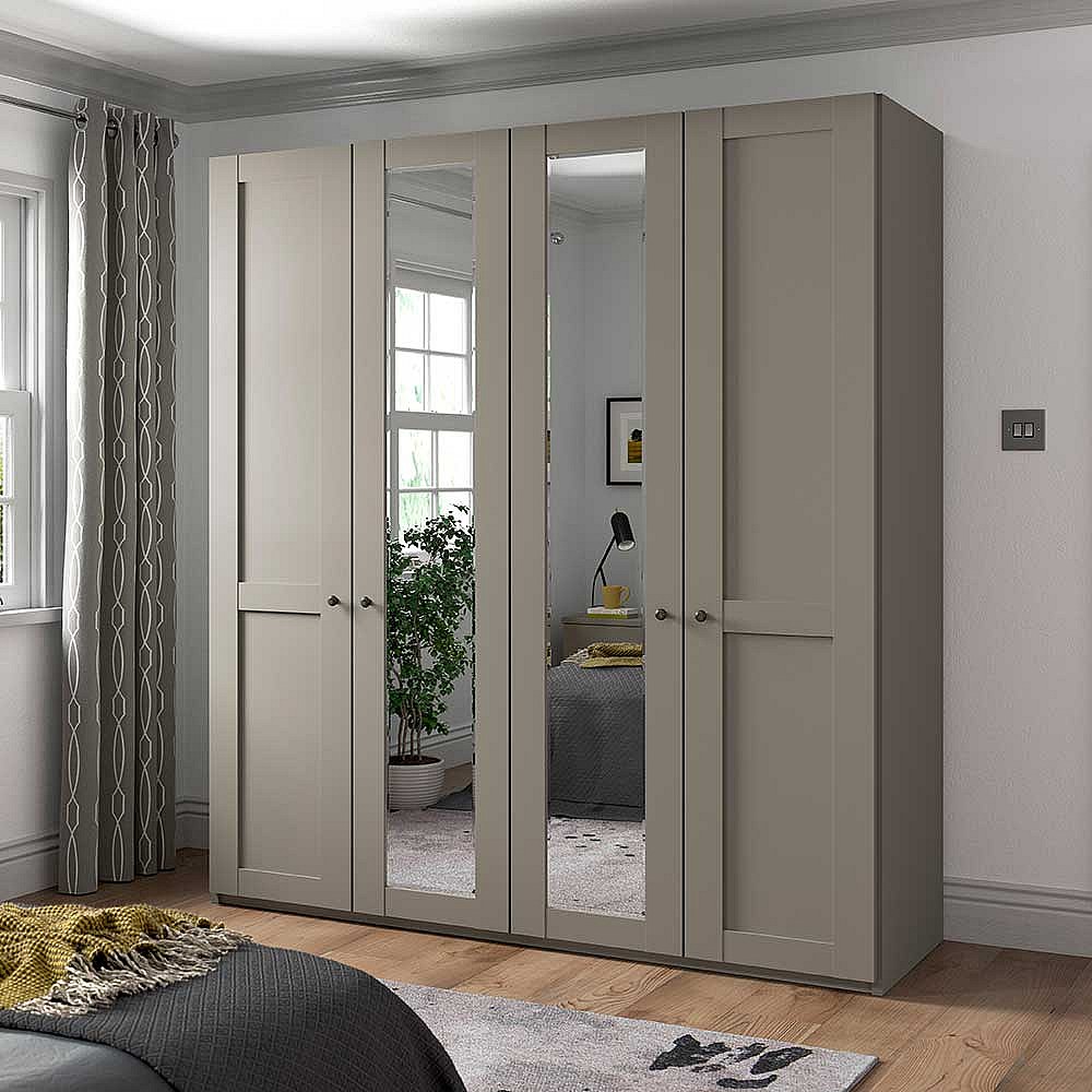 Schlafzimmerschrank modern Landhaus in Hellgrau Spiegeltüren