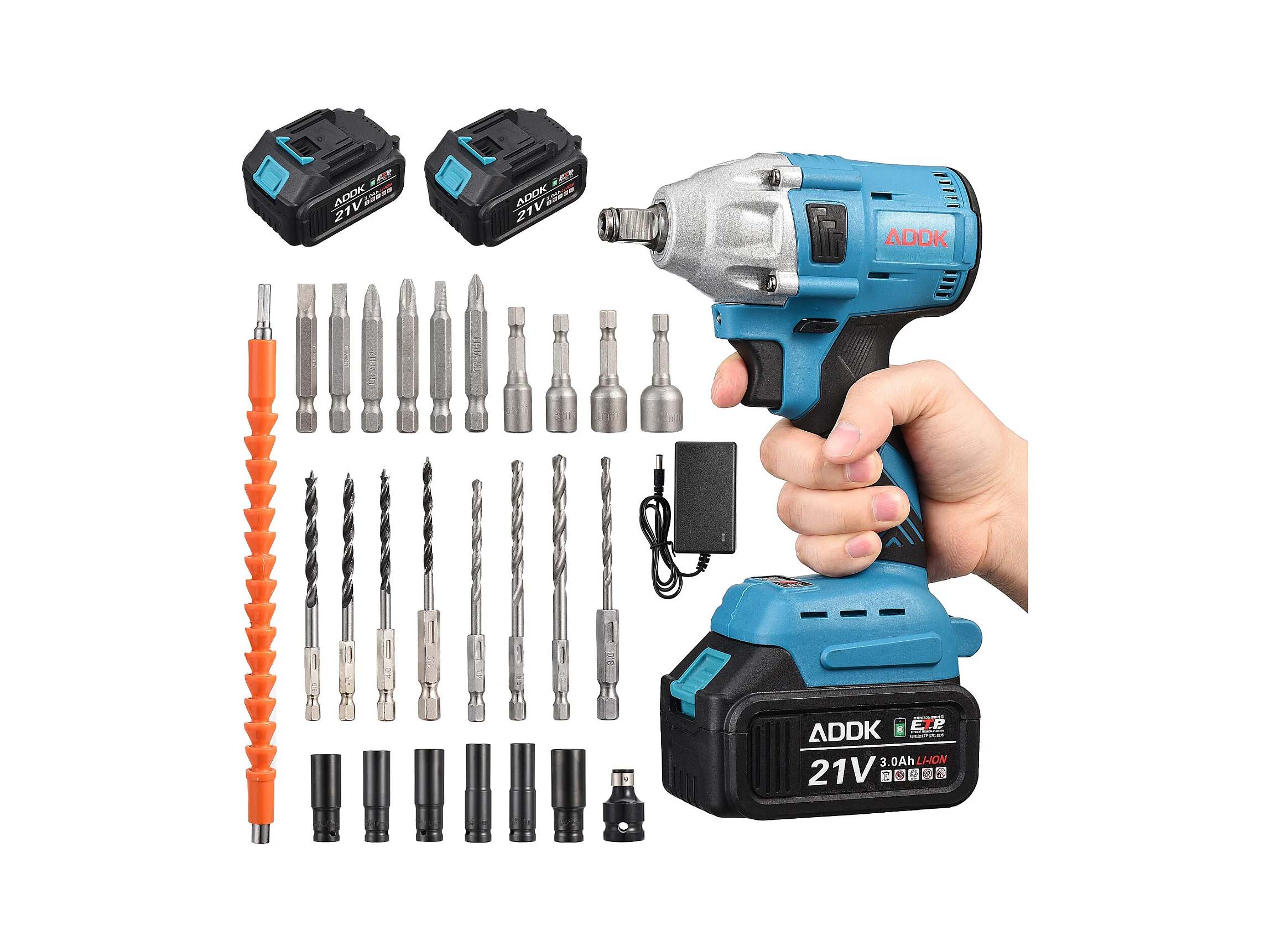 Schlagschrauber, 21V 3,0Ah Akku, bürstenloser Schlagschrauber, Radschrauben, 25-teilige Zubehörbox – Blau