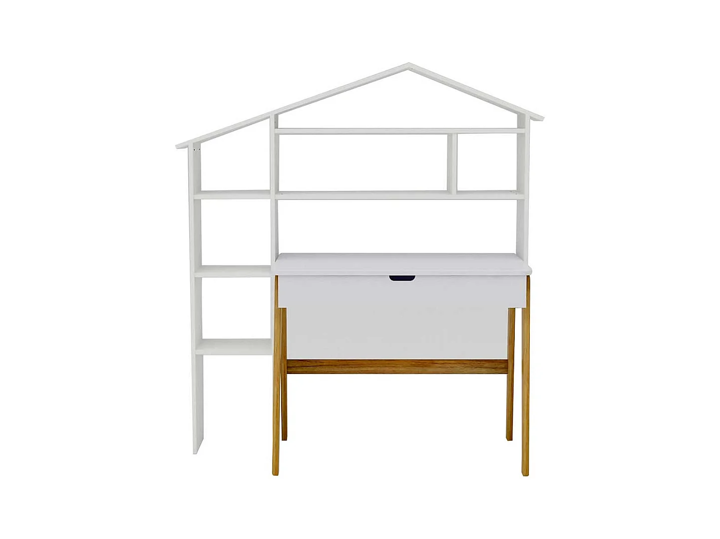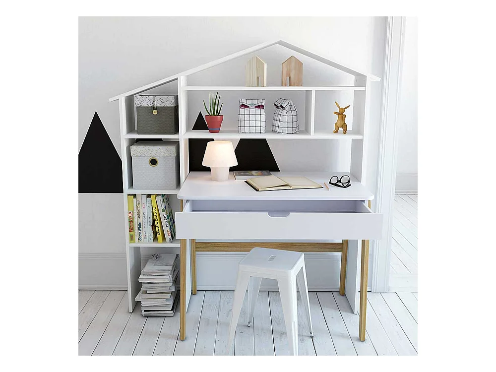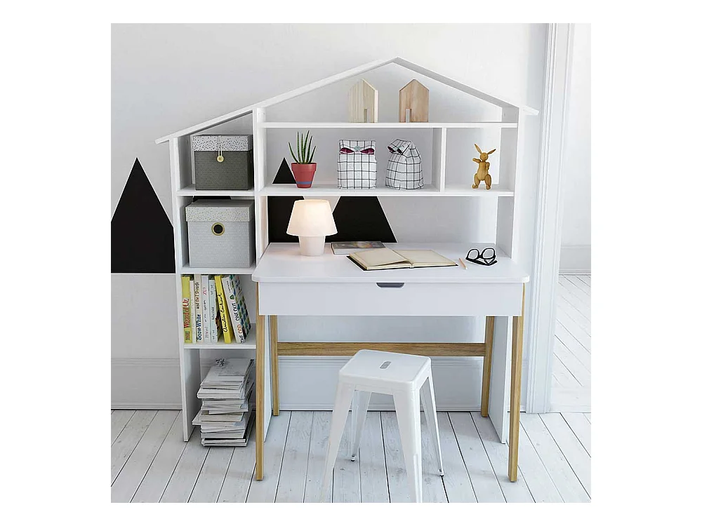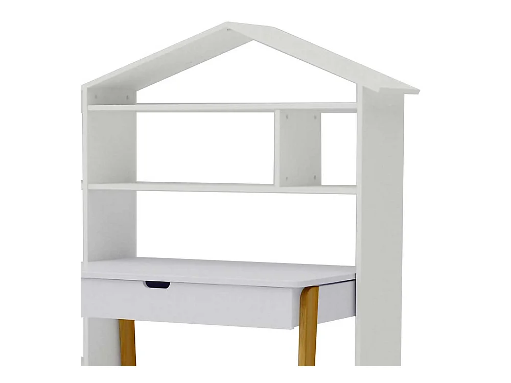 Schülerschreibtisch in Weiß Pinie teilmassiv Regal in Haus Optik (zweiteilig)