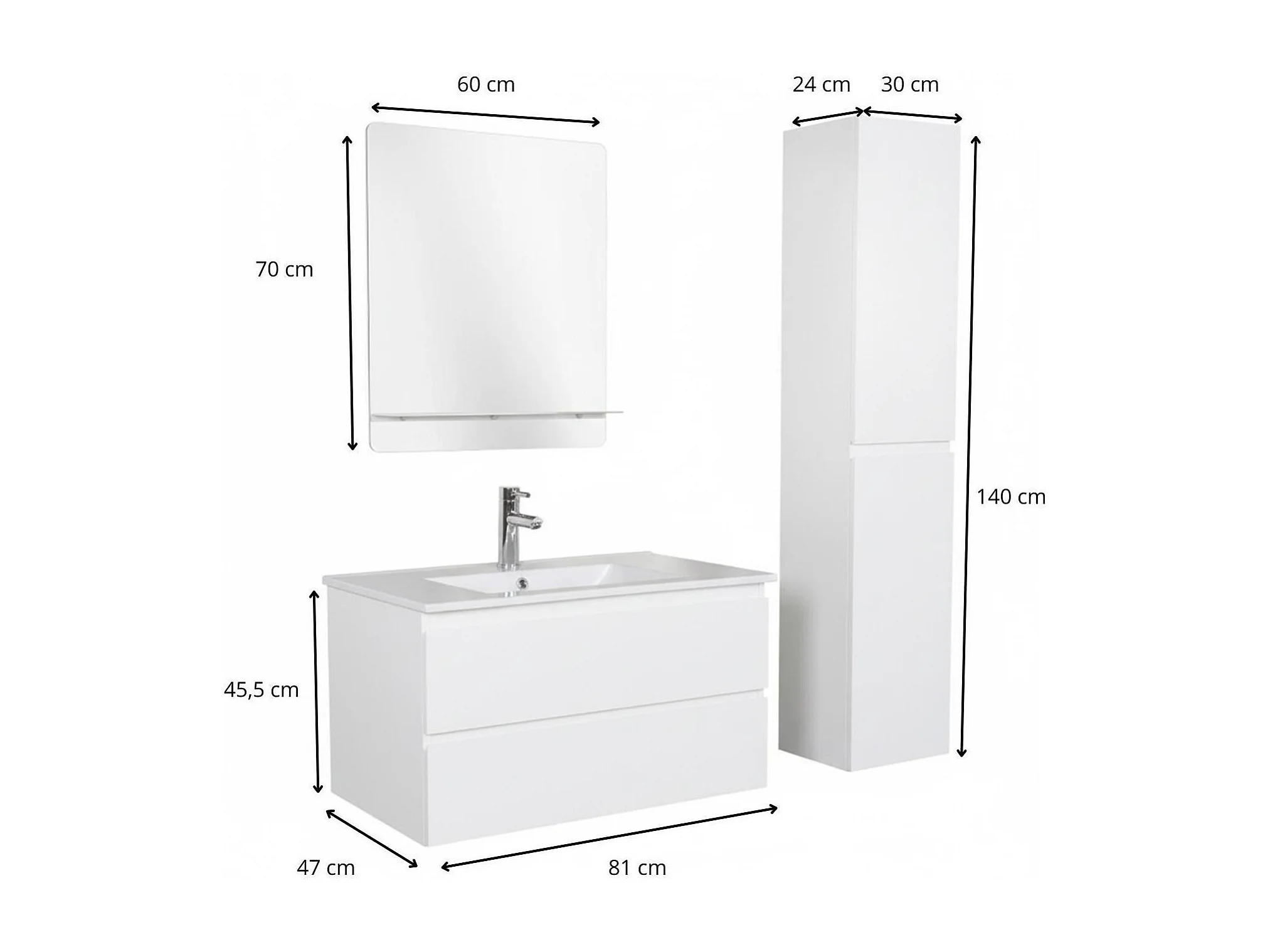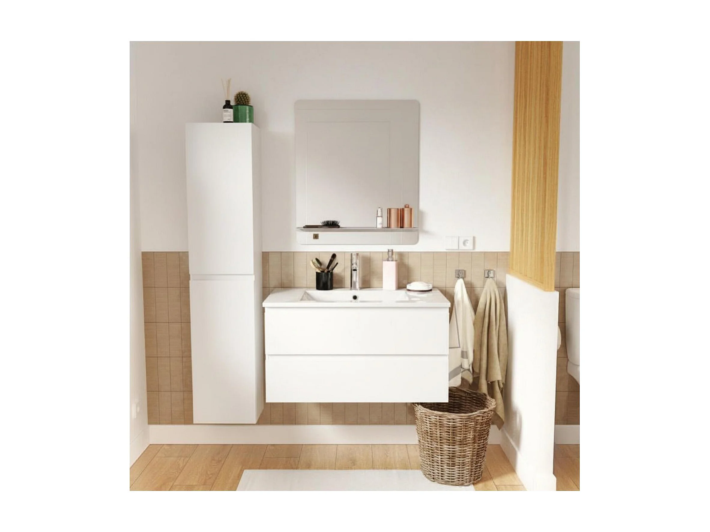 Schlichte Möbel + Wasserhahn + Spiegel + SORRENTO-Säule
