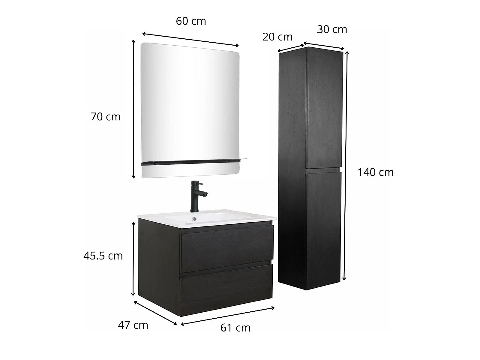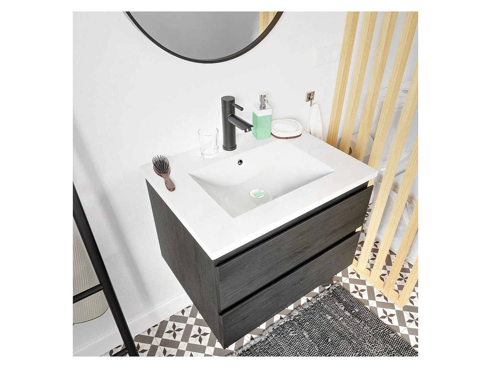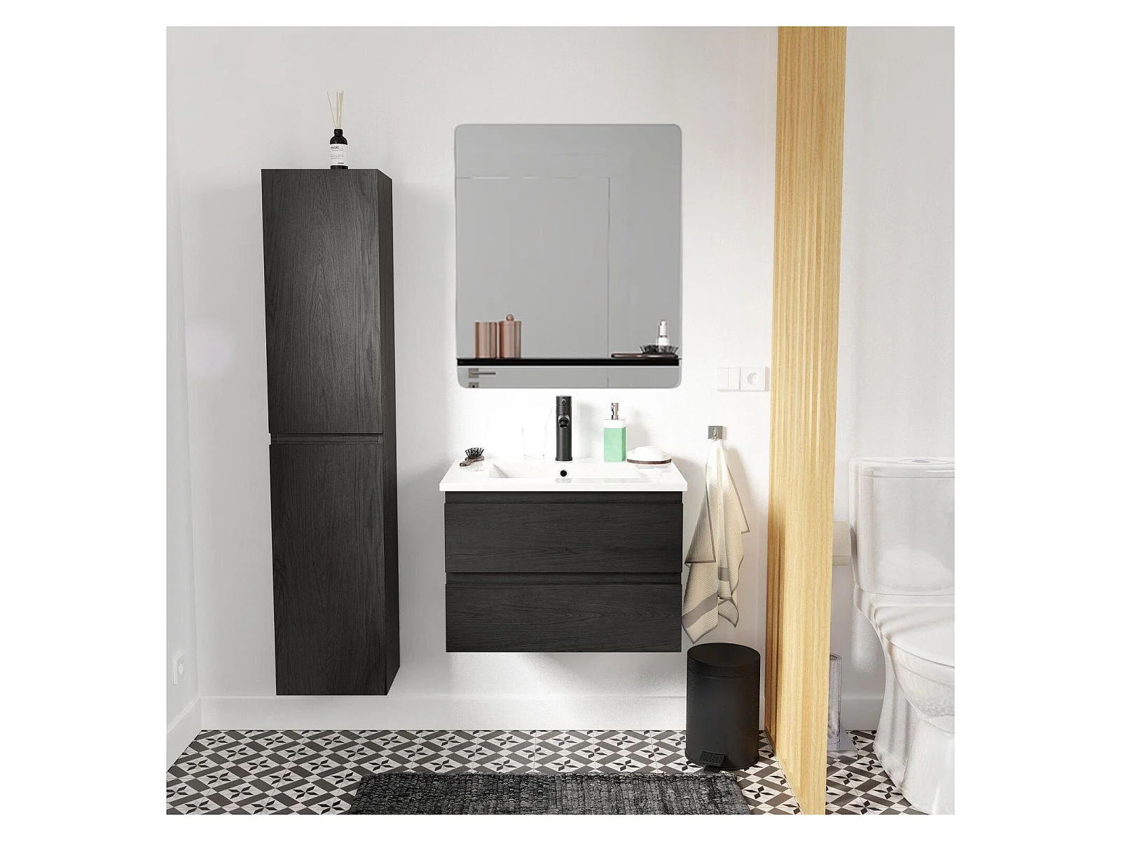 Schlichte Möbel + Wasserhahn + Spiegel + SORRENTO-Säule