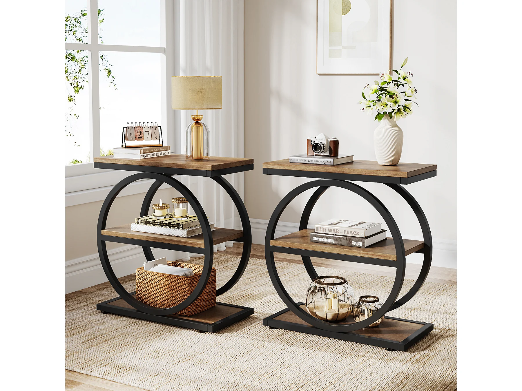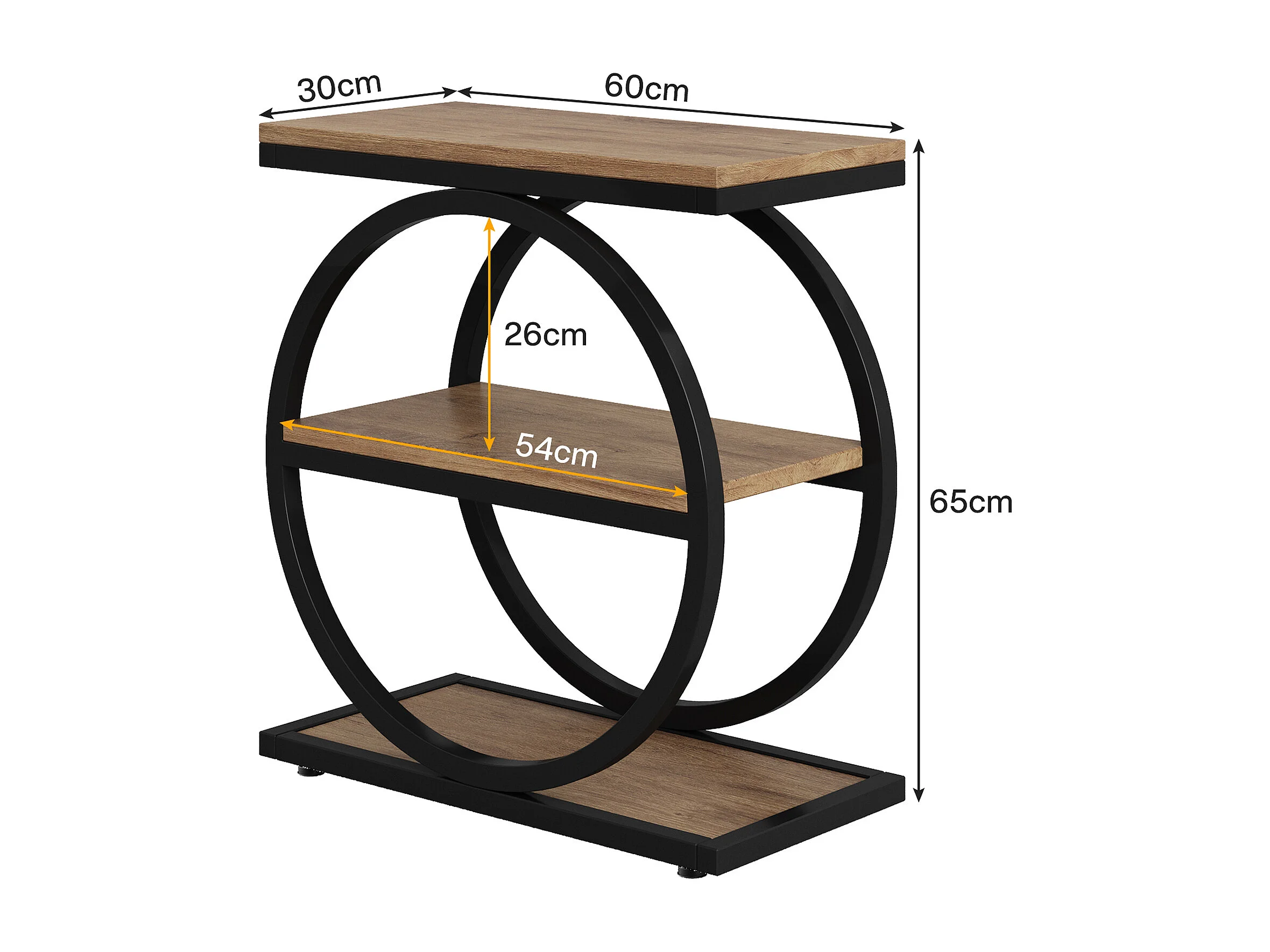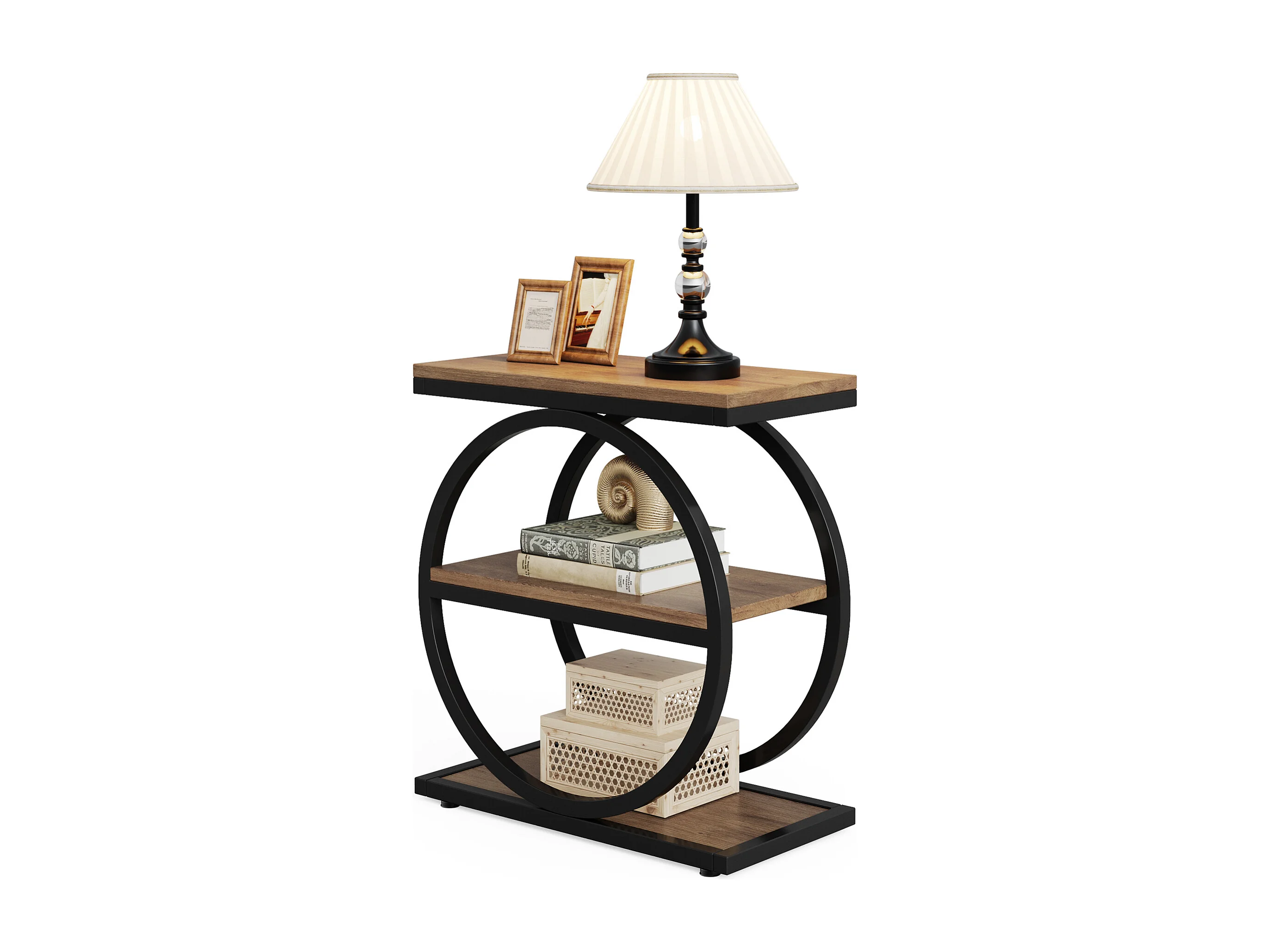 Schmale Beistelltisch mit 3 Ablageschränken, Industrie-Stil kleiner Sofa-Endtisch